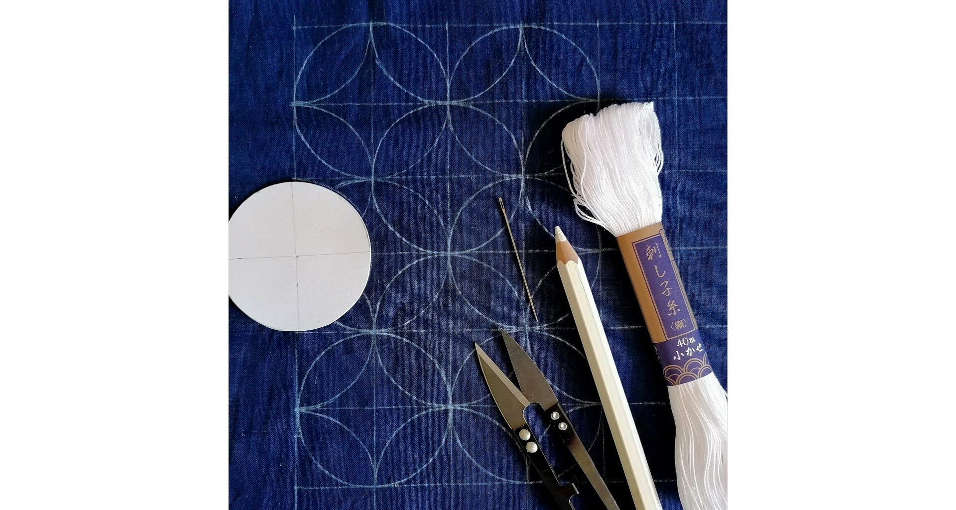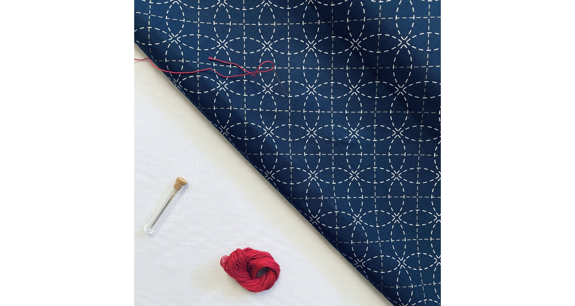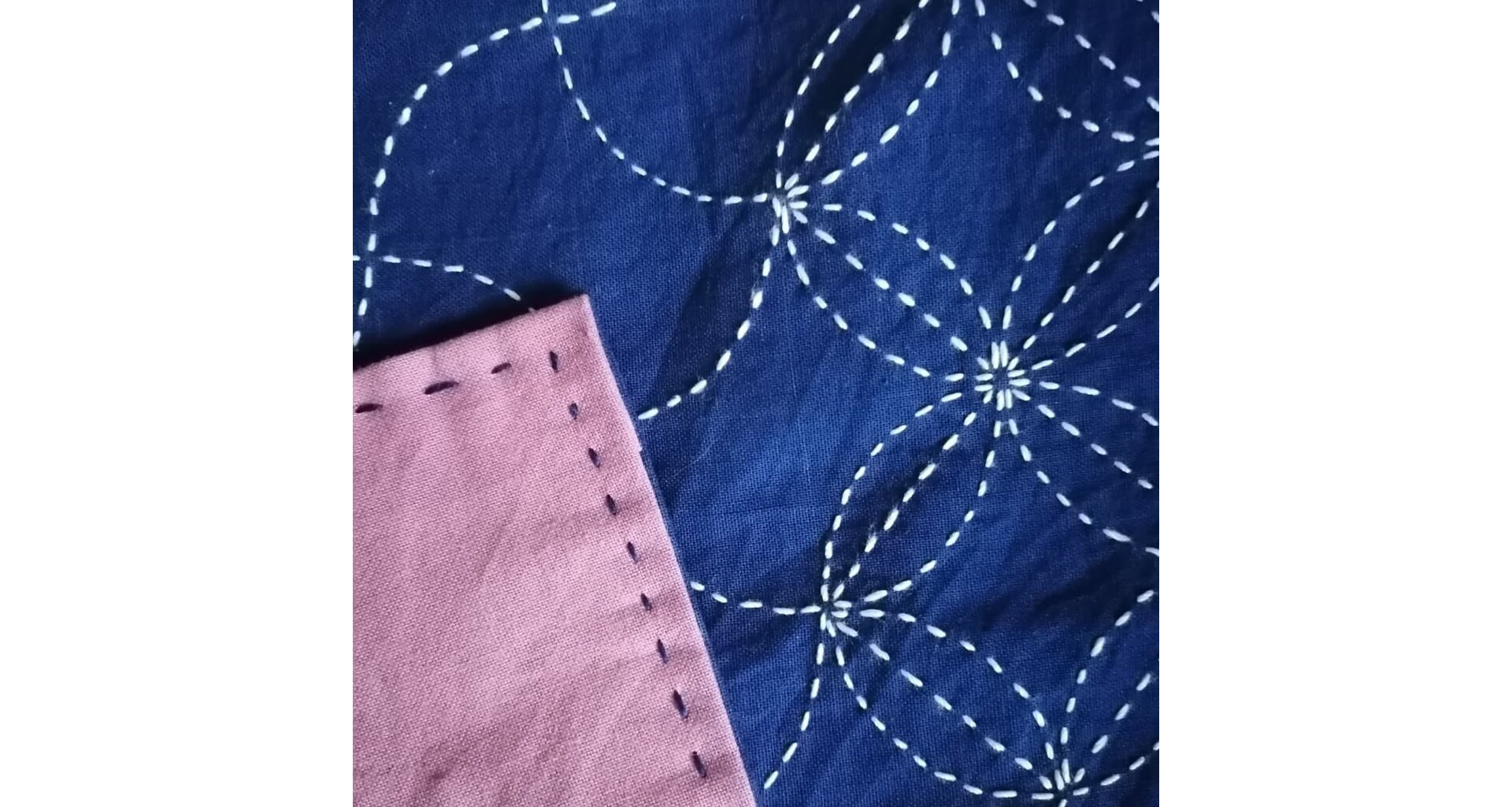 Piękne połączenie niebieskiego indygo i czystej białej nici. Geometria i precyzyjne linie. Odkryj z nami sashiko, japońską technikę pikowania.