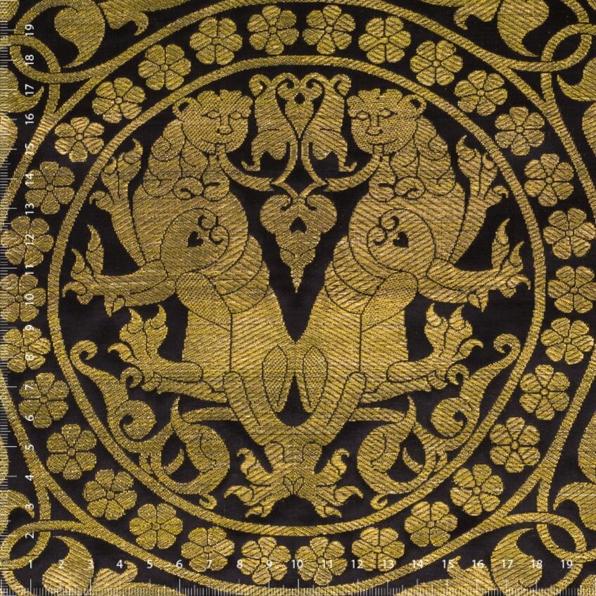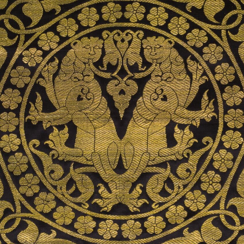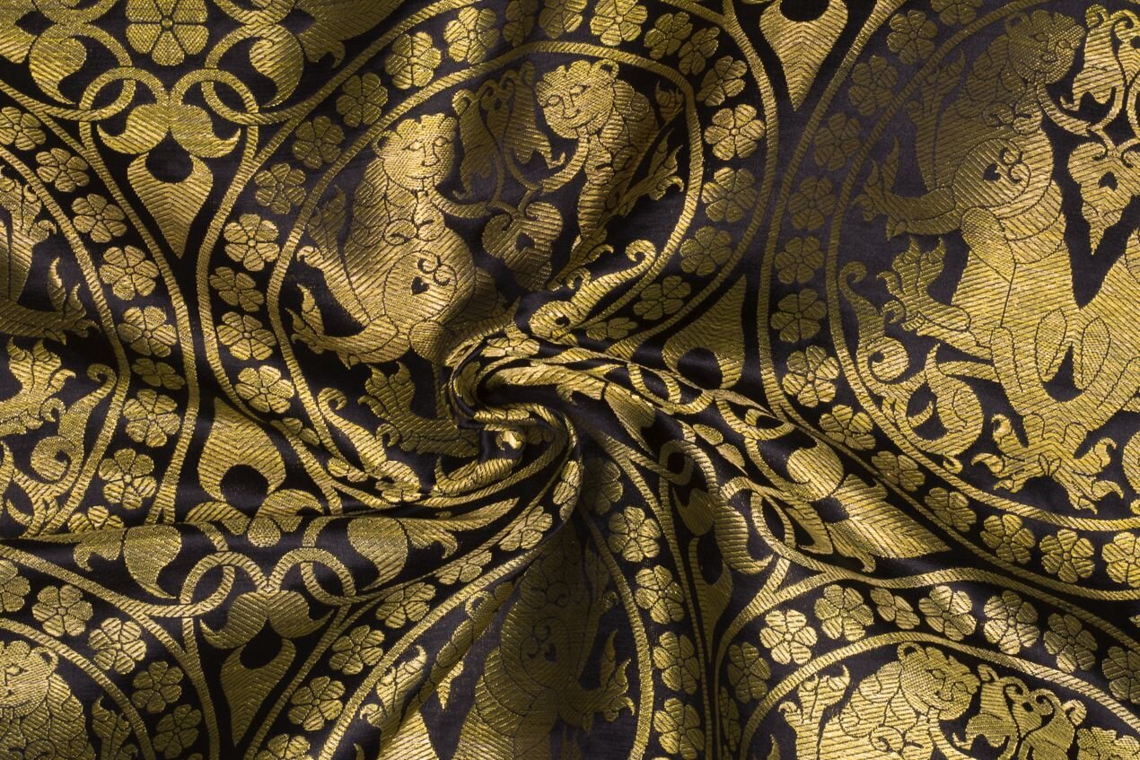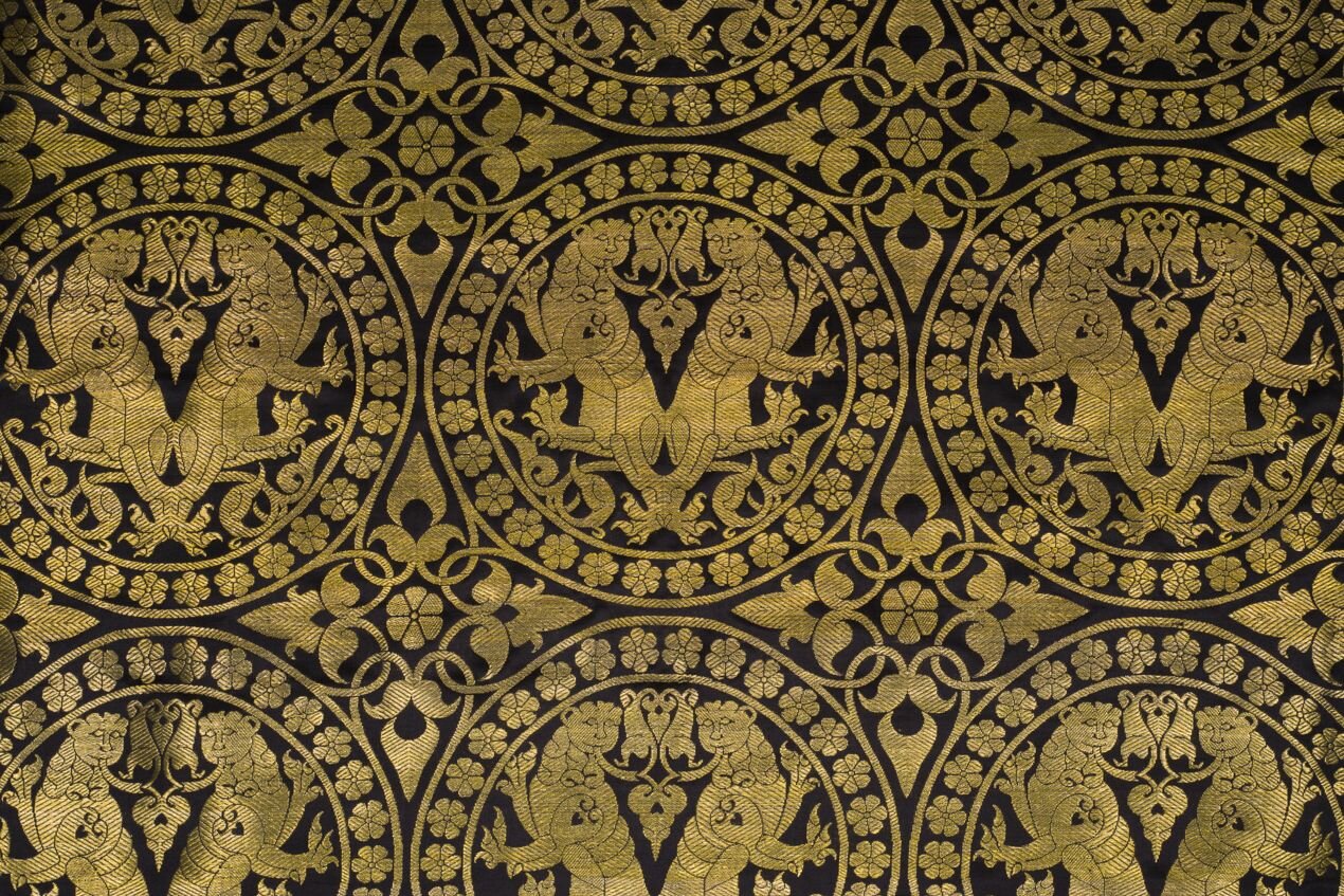 Ručně tkaná replika brokátu z Malé Asie z první poloviny 13. století, utkaná z přírodního hedvábí a skutečných metalických nití. Zlatý vzor na černém pozadí. Hodí se nejen na šití historických kostýmů, ale i do luxusních interiérů a ozvláštnění současné módy.