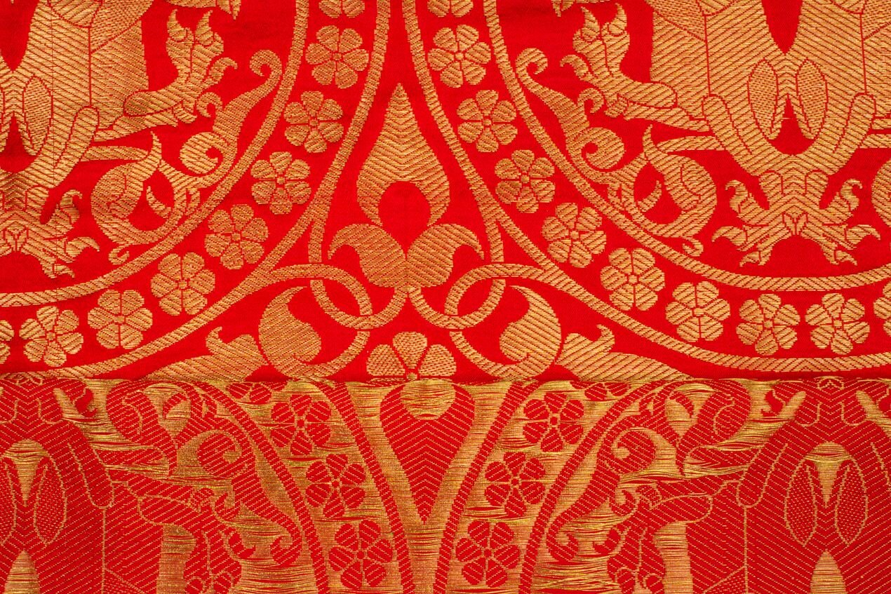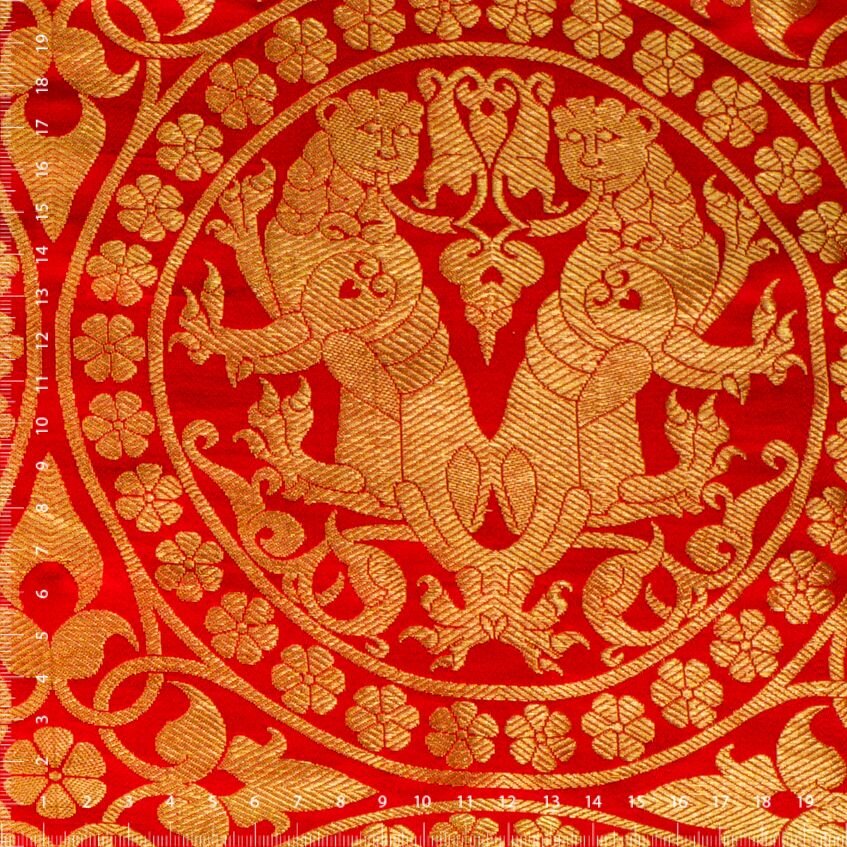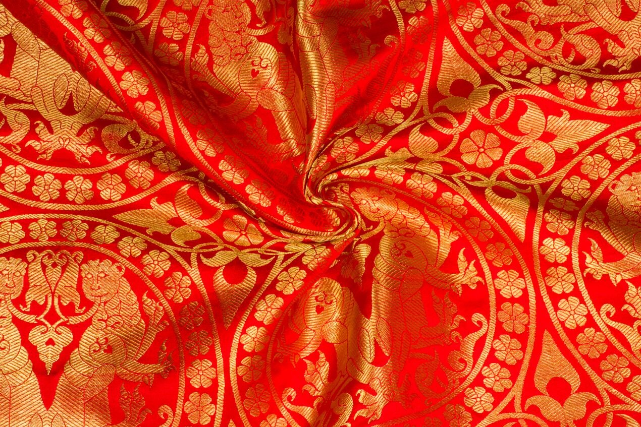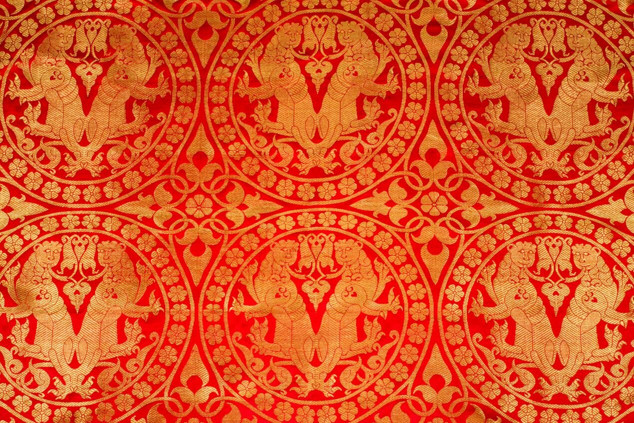 Ručně tkaná replika brokátu z Malé Asie z první poloviny 13. století, utkaná z přírodního hedvábí a skutečných metalických nití. Zlatý vzor na červeném pozadí. Hodí se nejen na šití historických kostýmů, ale i do luxusních interiérů a ozvláštnění současné módy.