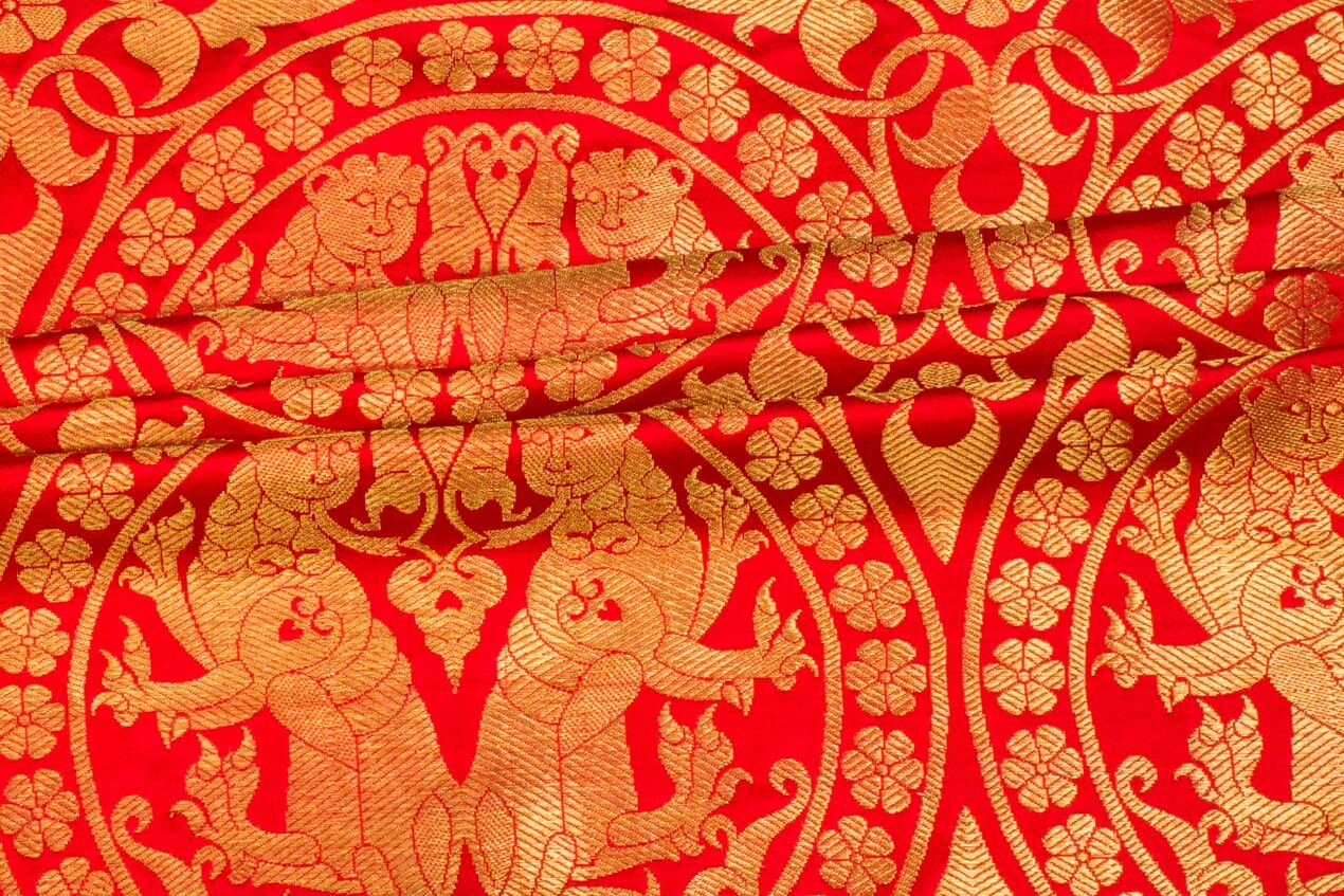 Tato replika historického brokátu je ručně tkaná žakárová látka z čistého hedvábí a skutečných kovových nití pozlacených pravým zlatem. Díky vysoce kvalitním materiálům je brokát nejen pevný, ale také měkký, jemný na dotek a prodyšný. Zlaté nitě nečernají ani neztrácejí svůj lesk.