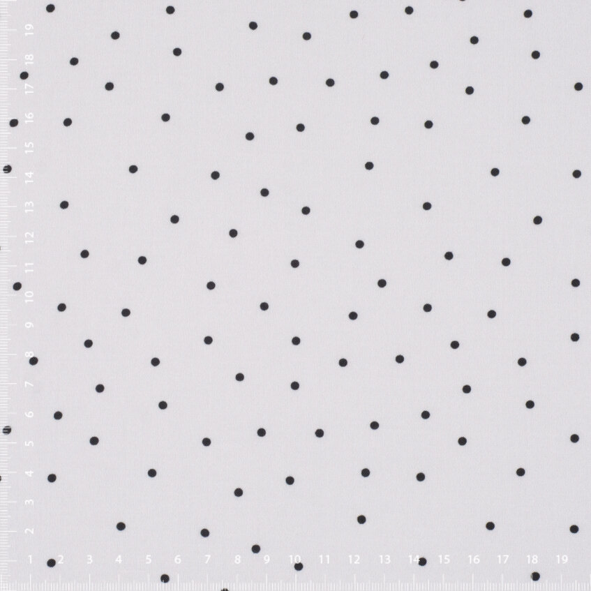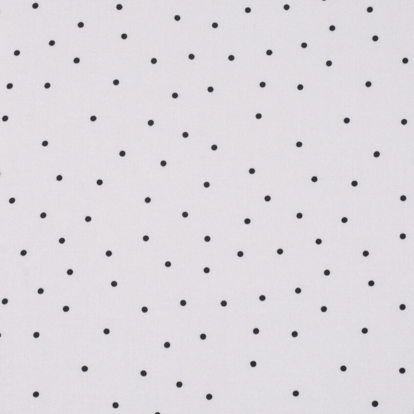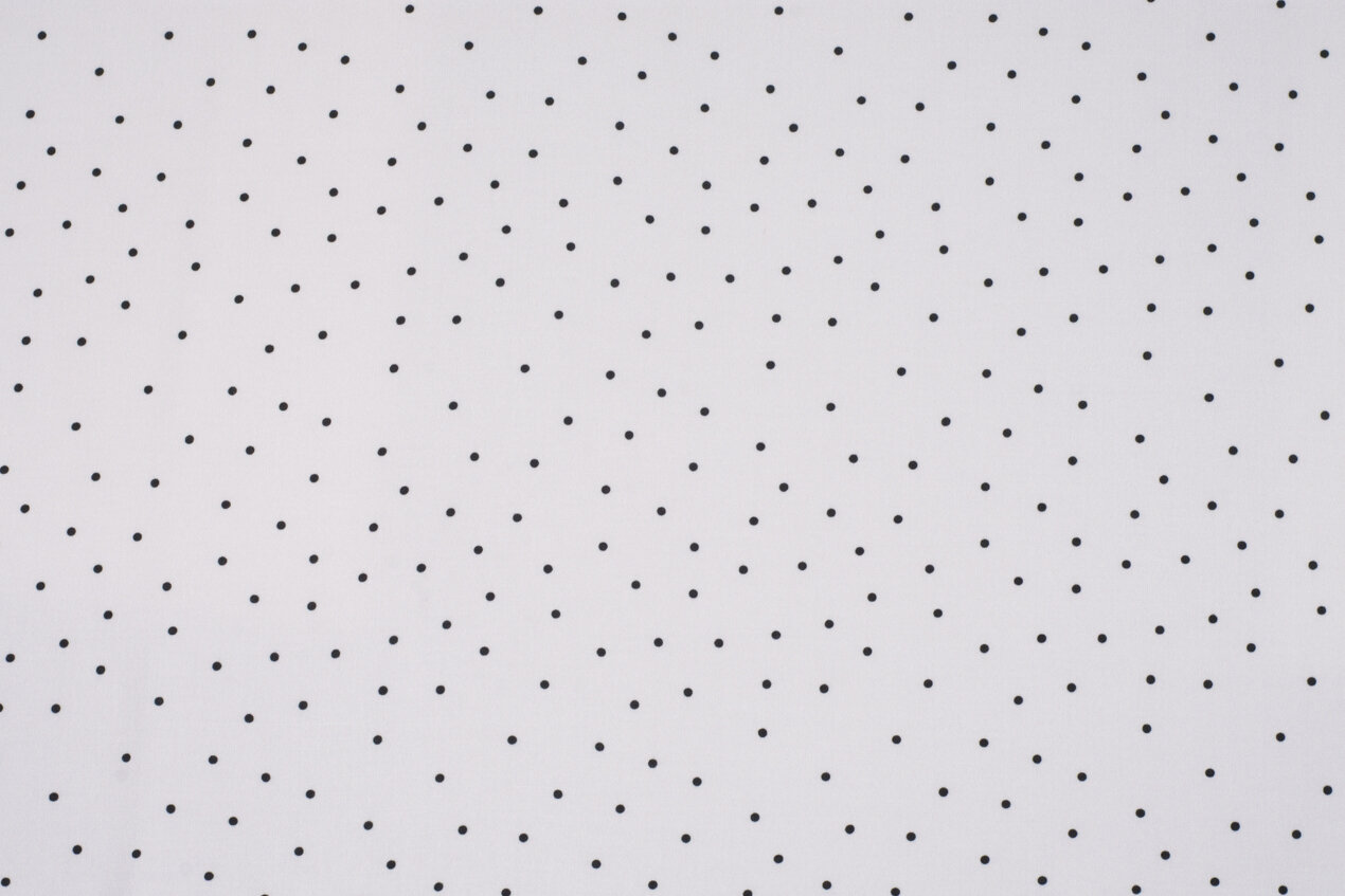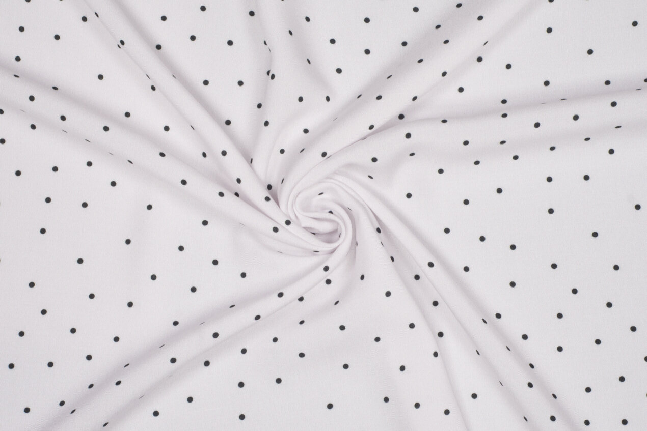 Lehký, heboučký batist z ekologicky vyrobené viskózy. Skvělý především na halenky a letní šaty, ale i na pohodlné domácí oblečení. Autorský potisk s nadčasovým vzorem černých puntíků na bílé.