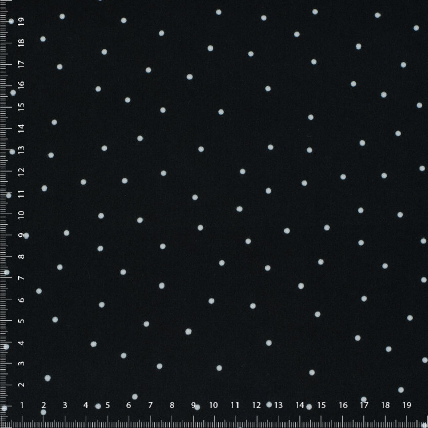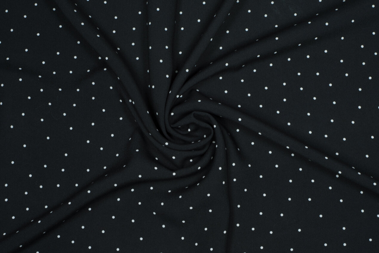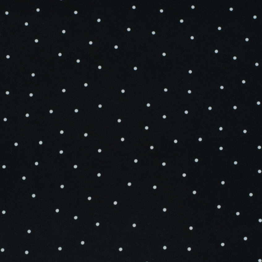 Lehký, heboučký batist z ekologicky vyrobené viskózy. Skvělý především na halenky a letní šaty, ale i na pohodlné domácí oblečení. Autorský potisk s nadčasovým vzorem bílých puntíků na černé.