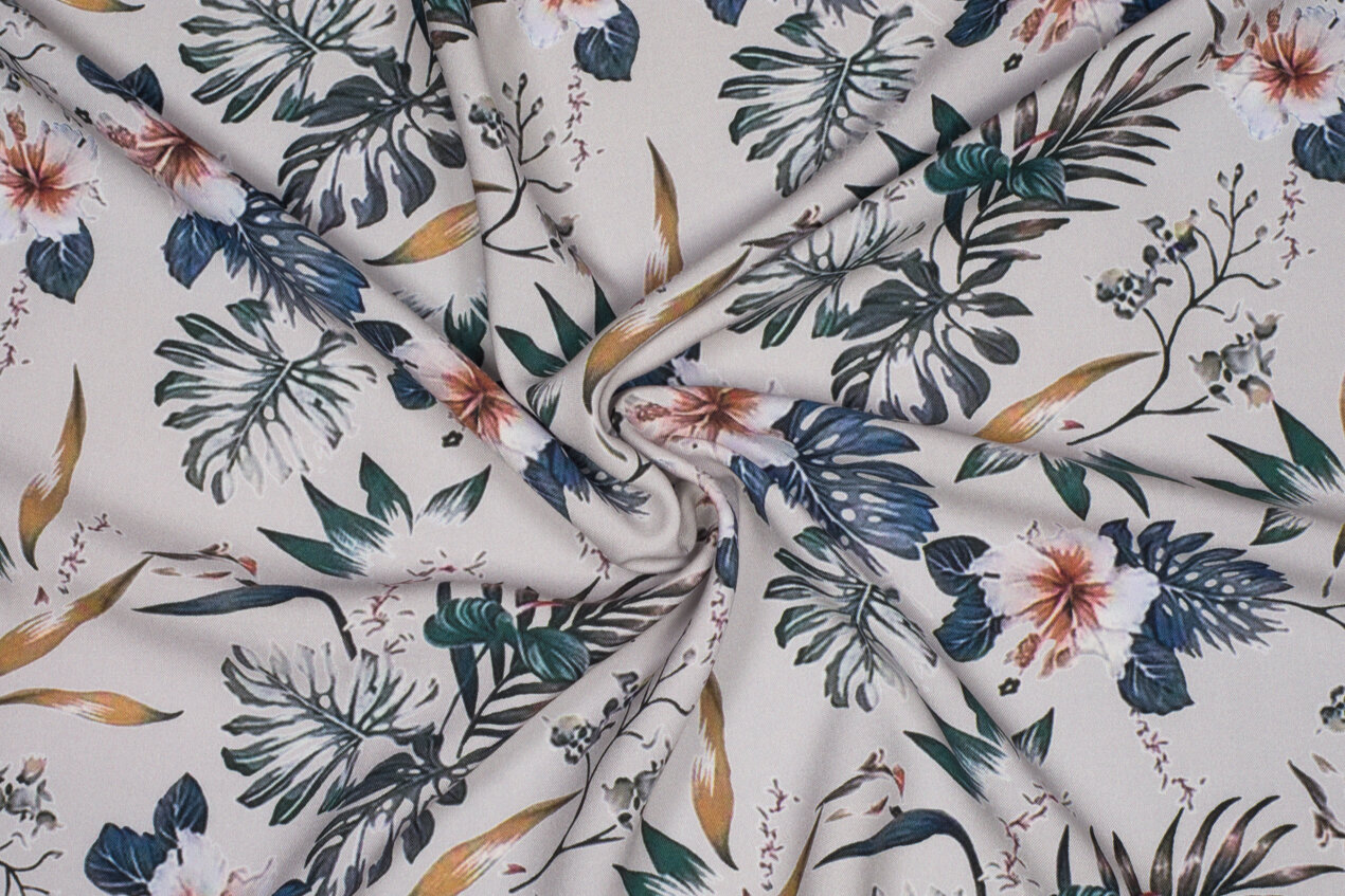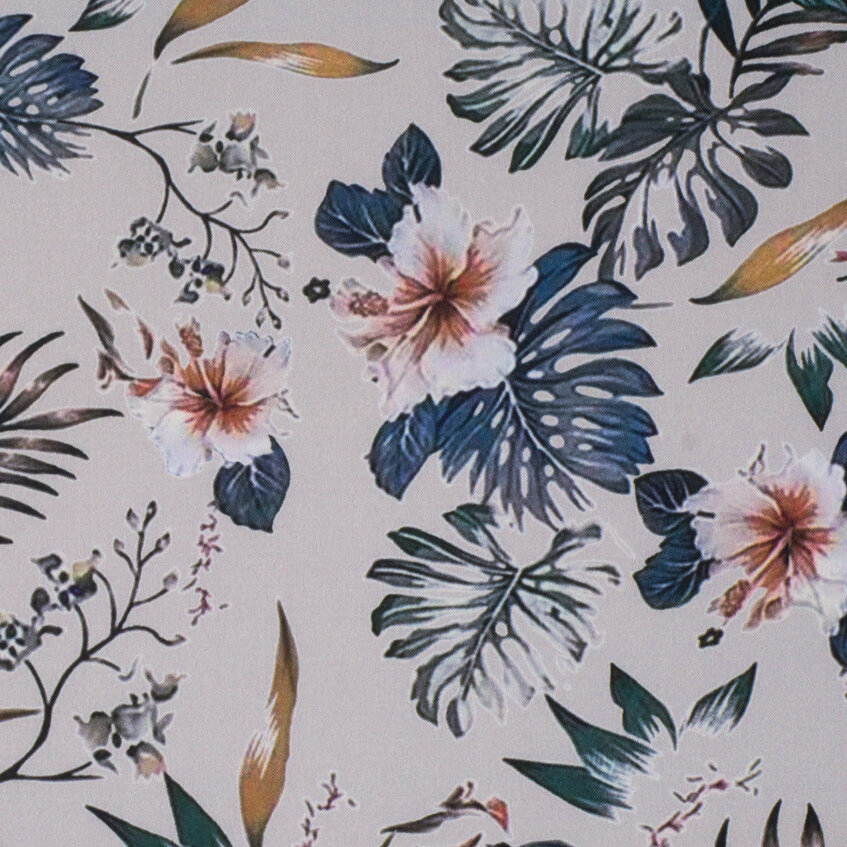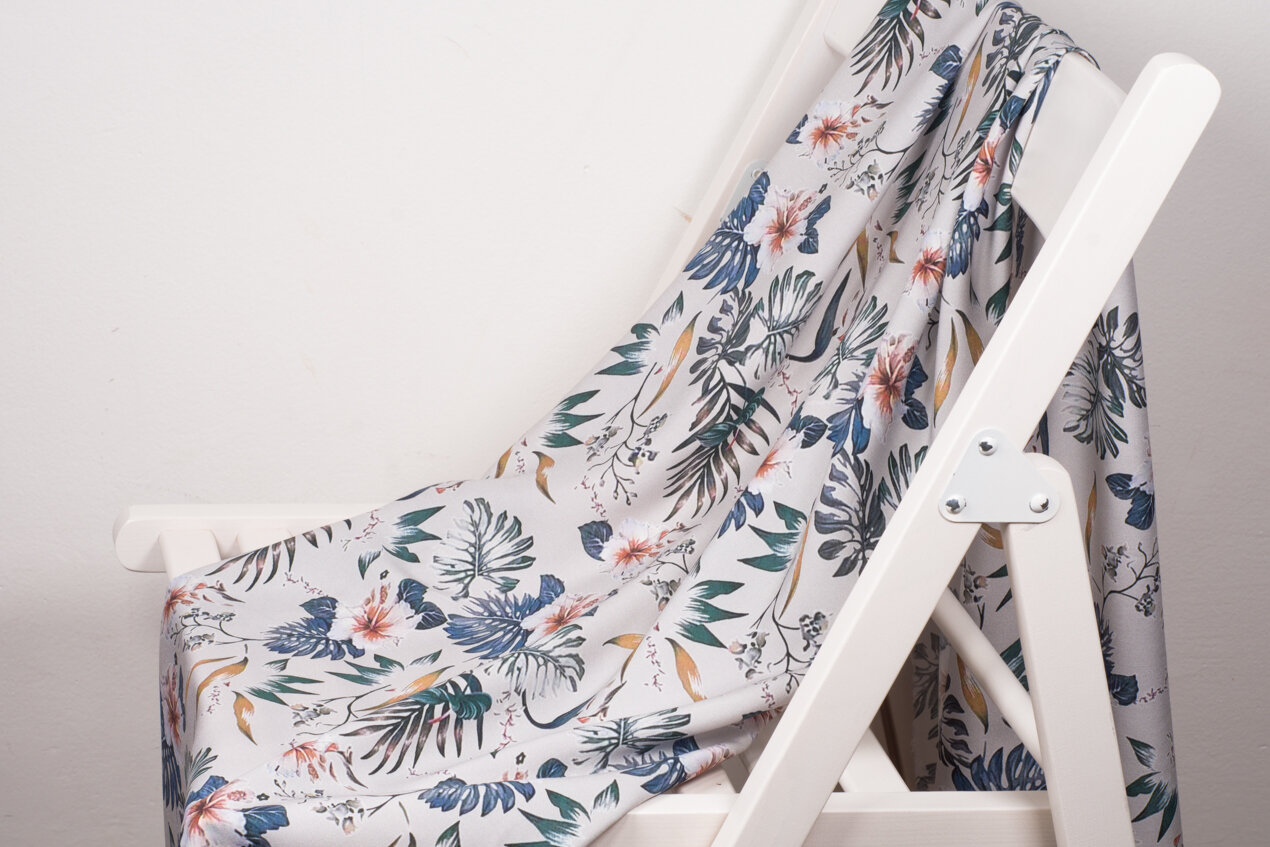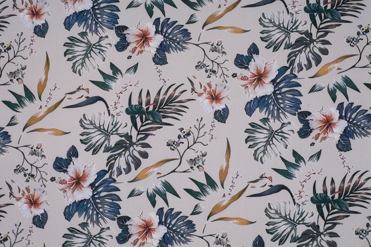 Lehký, heboučký batist z ekologicky vyrobené viskózy. Skvělý především na halenky a letní šaty, ale i na pohodlné domácí oblečení. Autorský potisk se vzorem exotických květin.