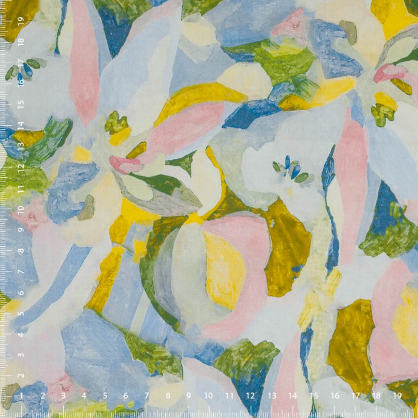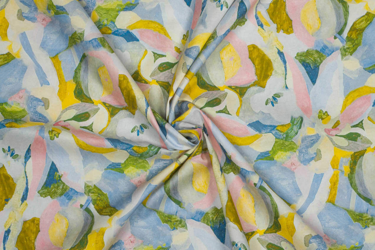 Jemný, hustě tkaný batist ze 100% bavlny je lehká a prodyšná látka, ideální na šaty, halenky i košile. Díky své univerzálnosti a snadnému zpracování je oblíbený mezi začátečníky i zkušenými švadlenami. Originální modro-žlutá látka s květinovým vzorem.