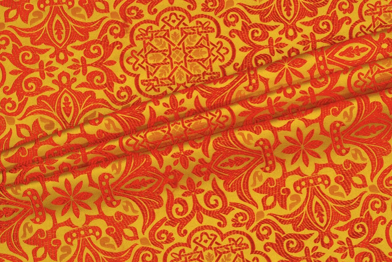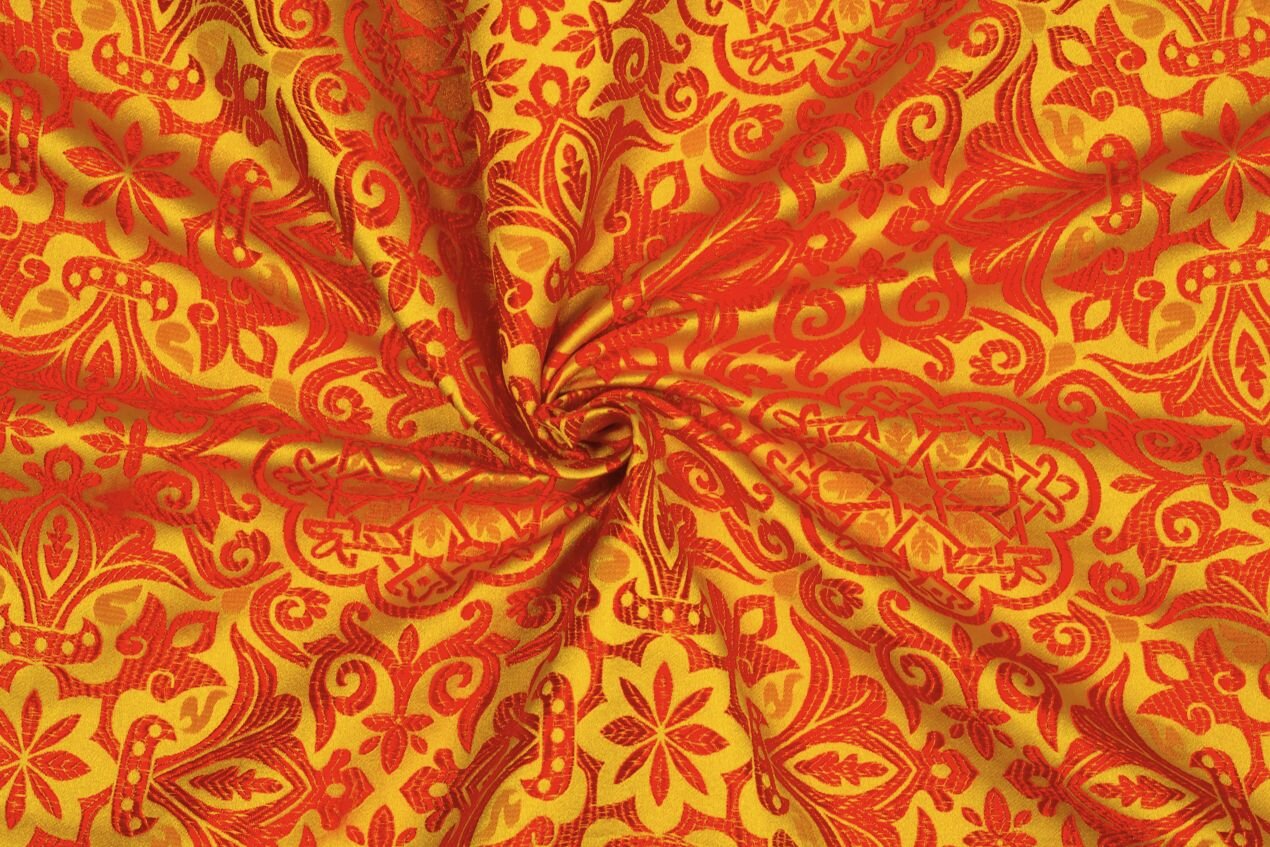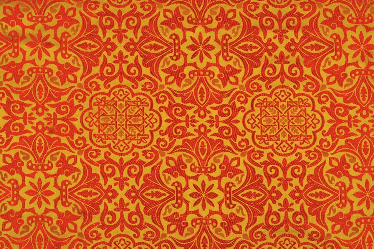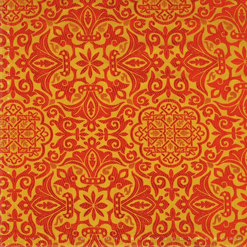 Brokát inspirovaný historickým středověkým vzorem je vhodný na autentické historické kostýmy a dekorace, nebo jako originální prvek v současné módě. Žakárová látka s tkaným vzorem vyrobená z jemných, vysoce kvalitních umělých vláken.