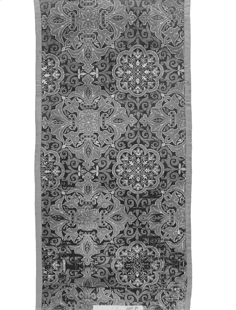 Geometrické vzory byly tehdy oblíbené nejen v textiliích, ale i v dlaždicových obkladech a ozdobných prvcích v řezbářství a štukové výzdobě, jak je vidět například v paláci Alhambra v Granadě.