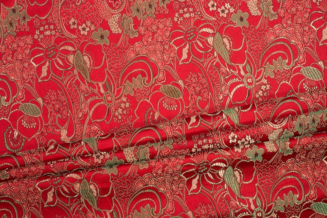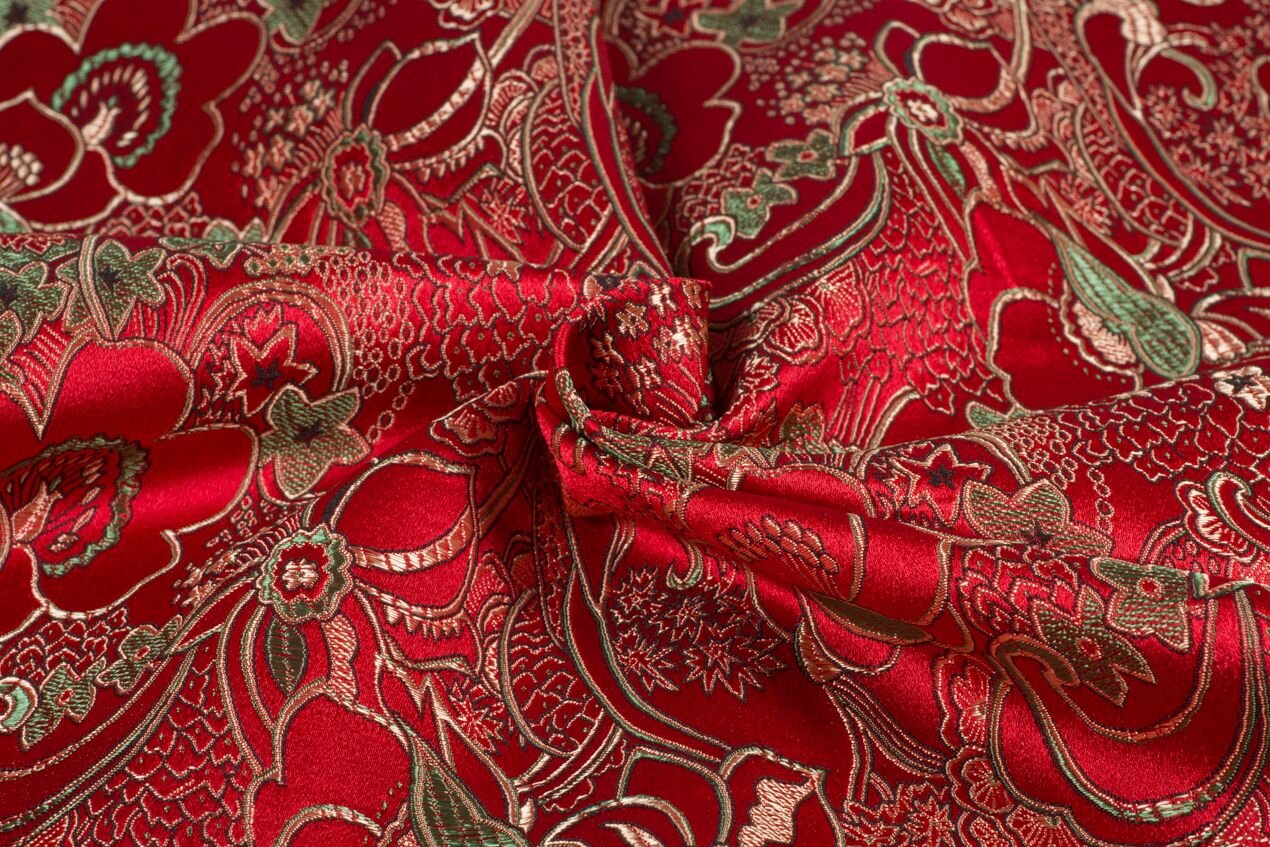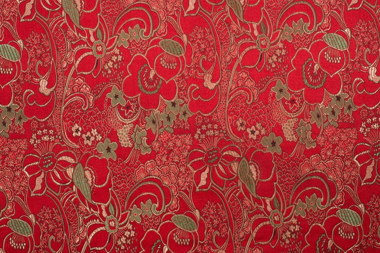 Luxusní pevná látka s pečlivě vytkávaným vzorem v červené barvě. Brokát se hodí na nesplývavé, vypasované střihy nebo oděvy které mají držet tvar jako jsou společenské šaty a sukně, korzety, kabátky, saka a bundy. Ušijete z něj také krásnou kabelku, kravatu či motýlka nebo okrasný povlak na polštář či závěs.