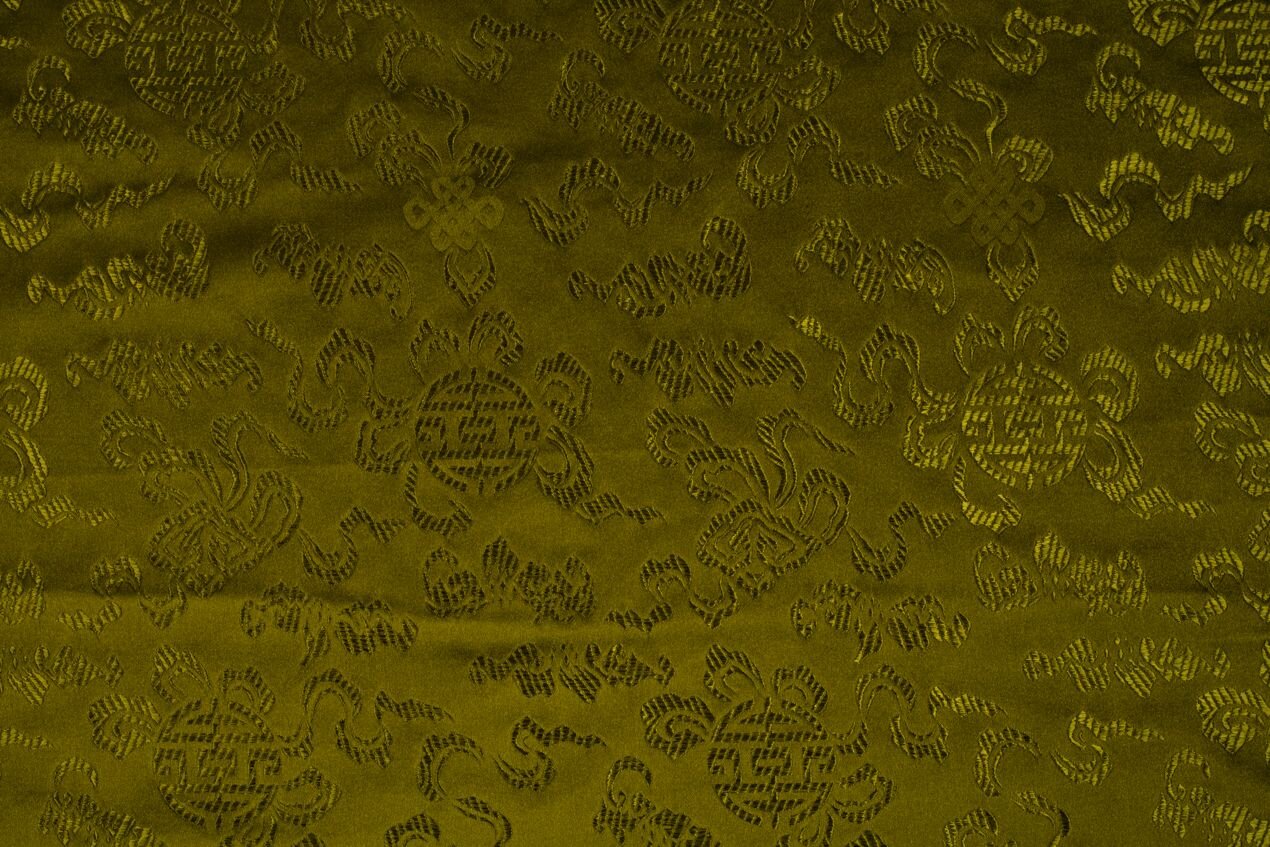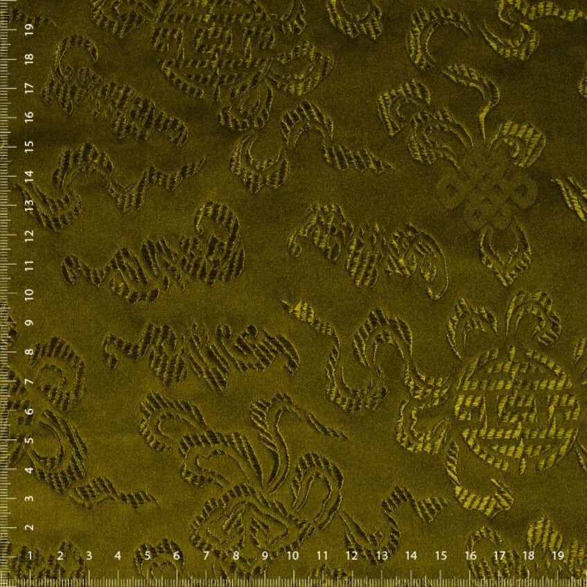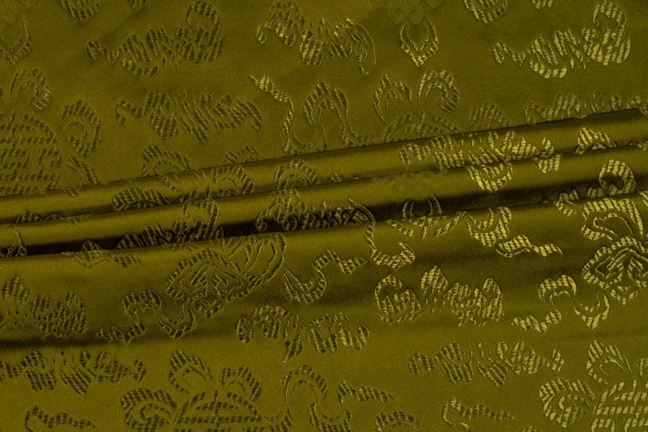 Luxusní pevná látka s pečlivě vytkávaným vzorem v olivově zelené barvě. Brokát se hodí na nesplývavé, vypasované střihy nebo oděvy které mají držet tvar jako jsou společenské šaty a sukně, korzety, kabátky, saka a bundy. Ušijete z něj také krásnou kabelku, kravatu či motýlka nebo okrasný povlak na polštář či závěs.