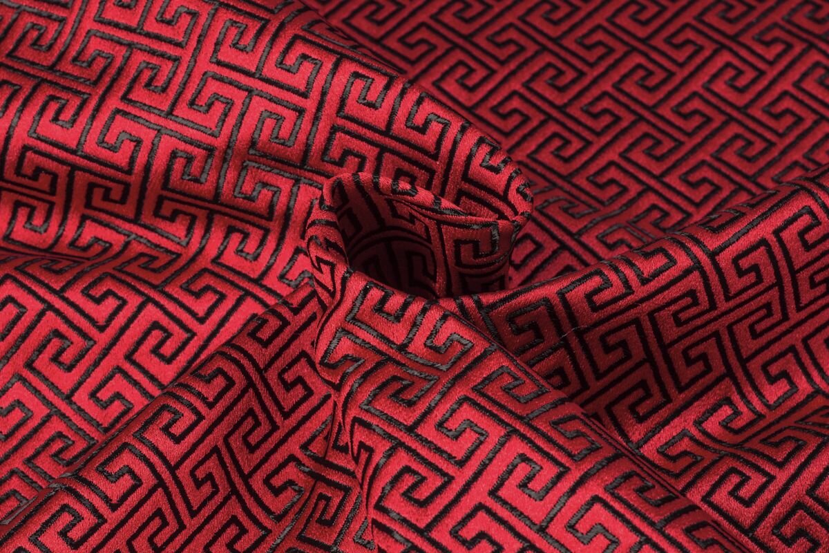 Luxusní pevná látka s pečlivě vytkávaným vzorem v červeno-černé barvě. Brokát se hodí na nesplývavé, vypasované střihy nebo oděvy které mají držet tvar jako jsou společenské šaty a sukně, korzety, kabátky, saka a bundy. Ušijete z něj také krásnou kabelku, kravatu či motýlka nebo okrasný povlak na polštář či závěs.