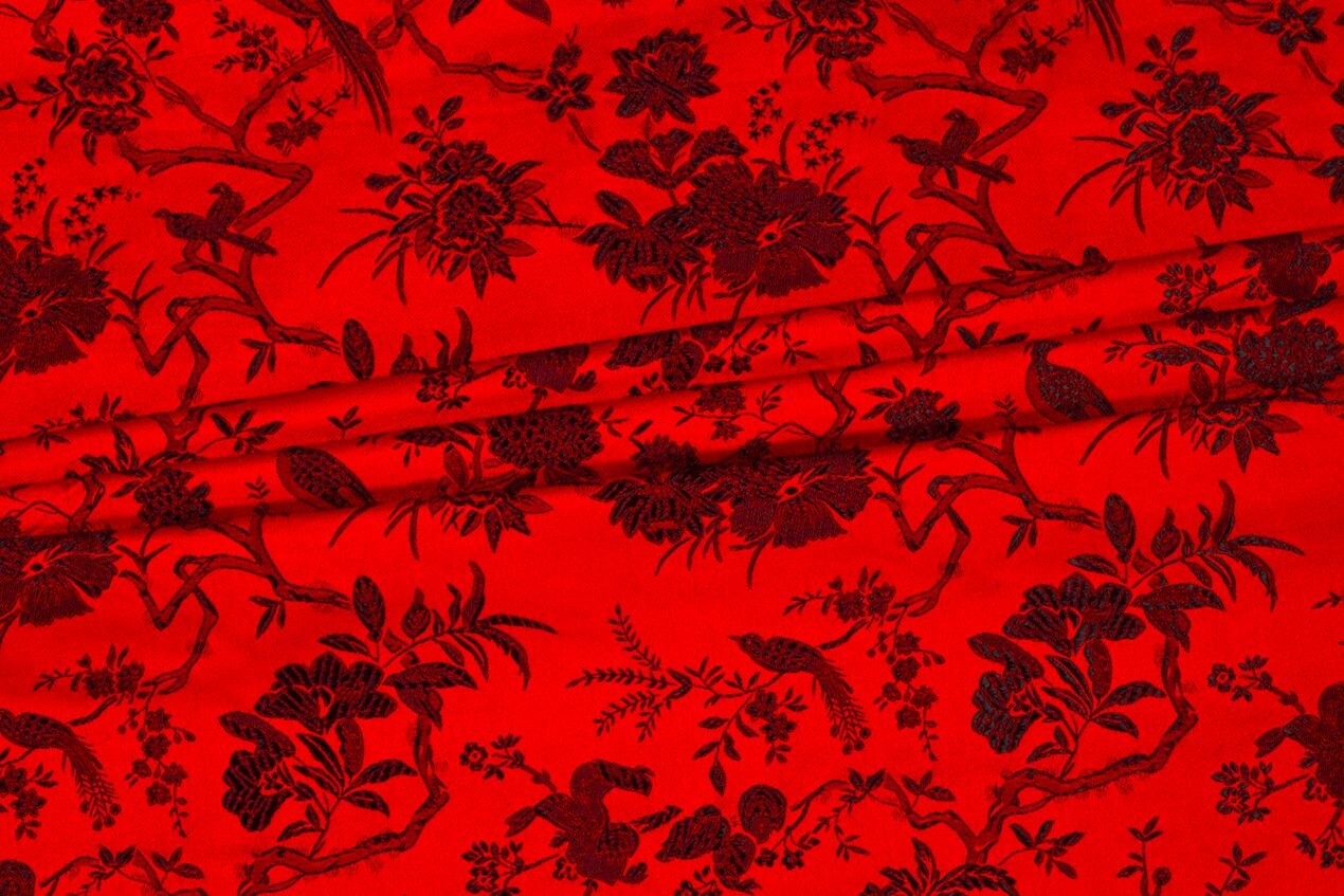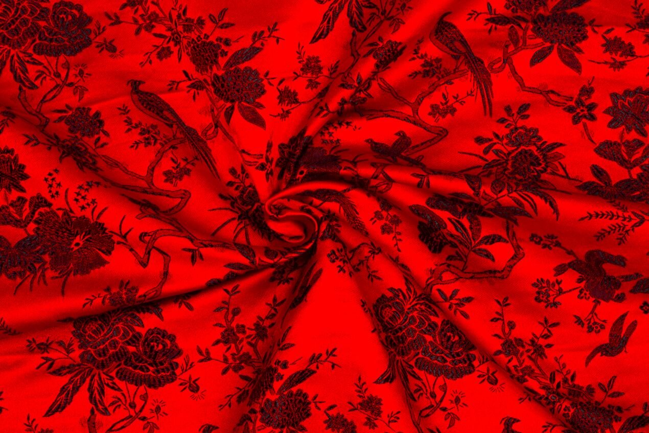 Luxusní pevná látka s pečlivě vytkávaným vzorem v černé a červené barvě. Brokát se hodí na nesplývavé, vypasované střihy nebo oděvy které mají držet tvar jako jsou společenské šaty a sukně, korzety, kabátky, saka a bundy. Ušijete z něj také krásnou kabelku, kravatu či motýlka nebo okrasný povlak na polštář či závěs.