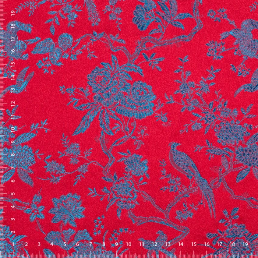Luxusní pevná látka s pečlivě vytkávaným vzorem v modro-červené barvě. Brokát se hodí na nesplývavé, vypasované střihy nebo oděvy které mají držet tvar jako jsou společenské šaty a sukně, korzety, kabátky, saka a bundy. Ušijete z něj také krásnou kabelku, kravatu či motýlka nebo okrasný povlak na polštář či závěs.