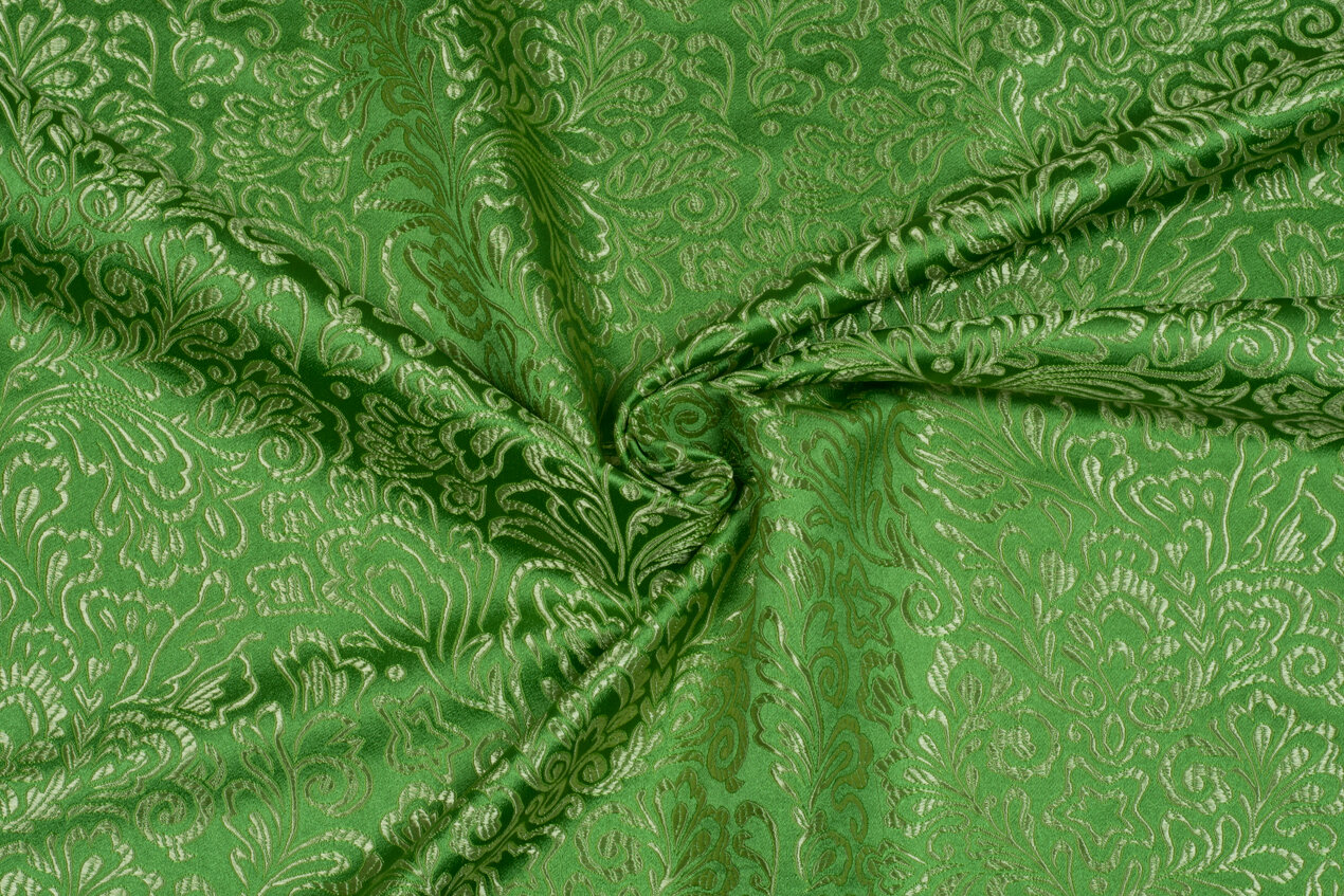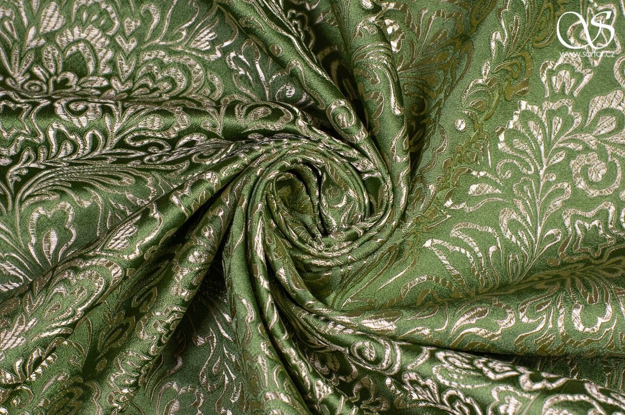 Luxusní pevná látka s pečlivě vytkávaným vzorem v olivovo-zlaté barvě. Brokát se hodí na nesplývavé, vypasované střihy nebo oděvy které mají držet tvar jako jsou společenské šaty a sukně, korzety, kabátky, saka a bundy. Ušijete z něj také krásnou kabelku, kravatu či motýlka nebo okrasný povlak na polštář či závěs.