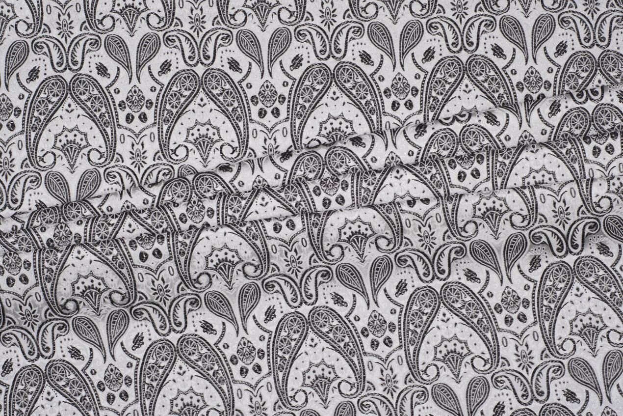 Luxusní pevná látka s pečlivě vytkávaným vzorem v černé a stříbrné barvě. Brokát se hodí na nesplývavé, vypasované střihy nebo oděvy které mají držet tvar jako jsou společenské šaty a sukně, korzety, kabátky, saka a bundy. Ušijete z něj také krásnou kabelku, kravatu či motýlka nebo okrasný povlak na polštář či závěs.