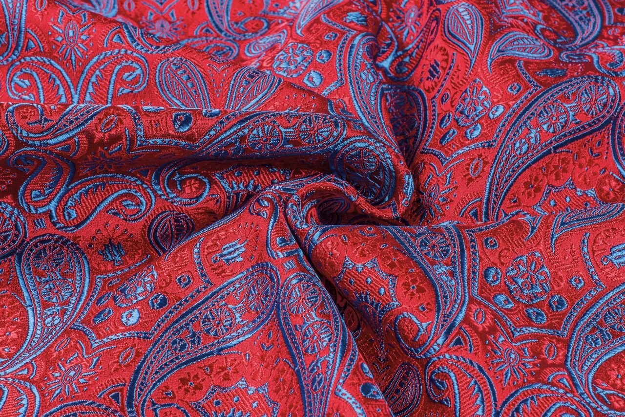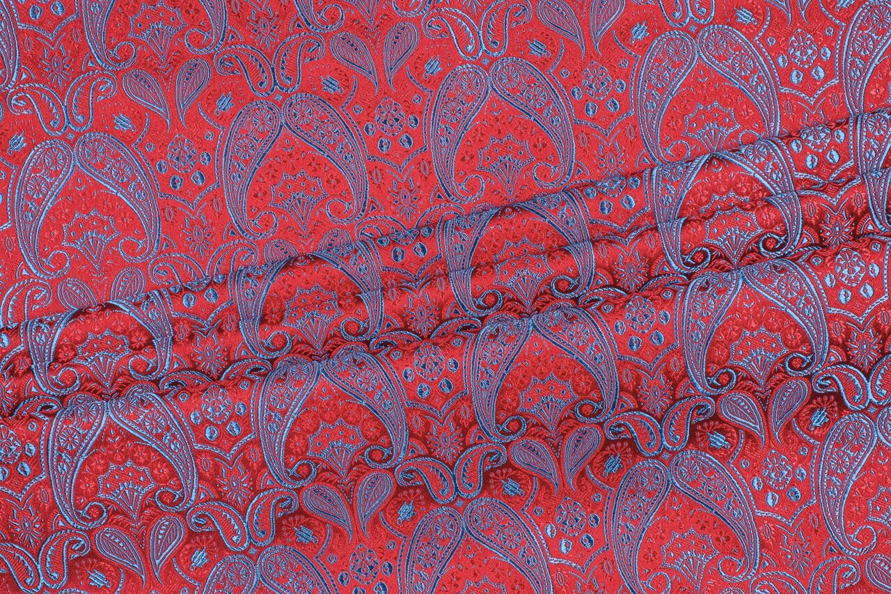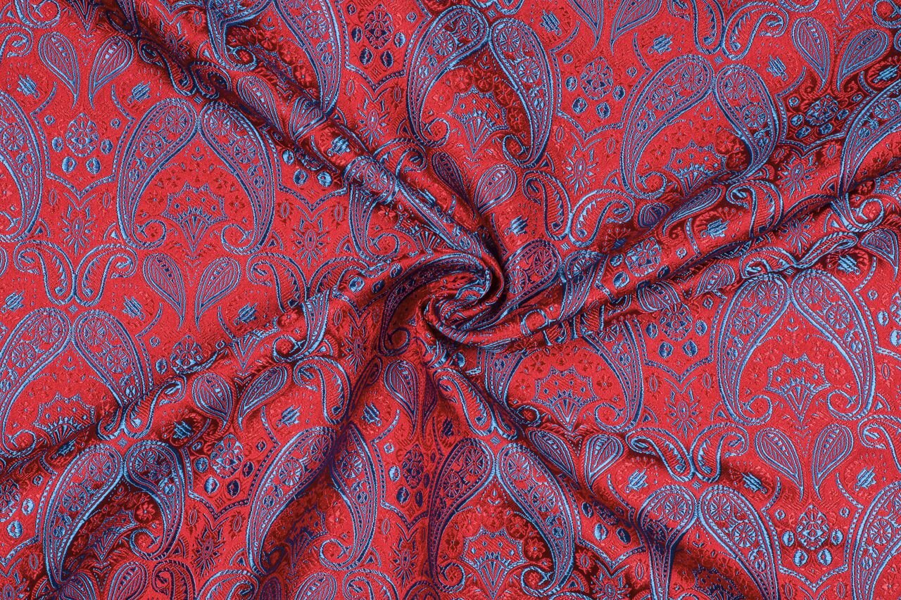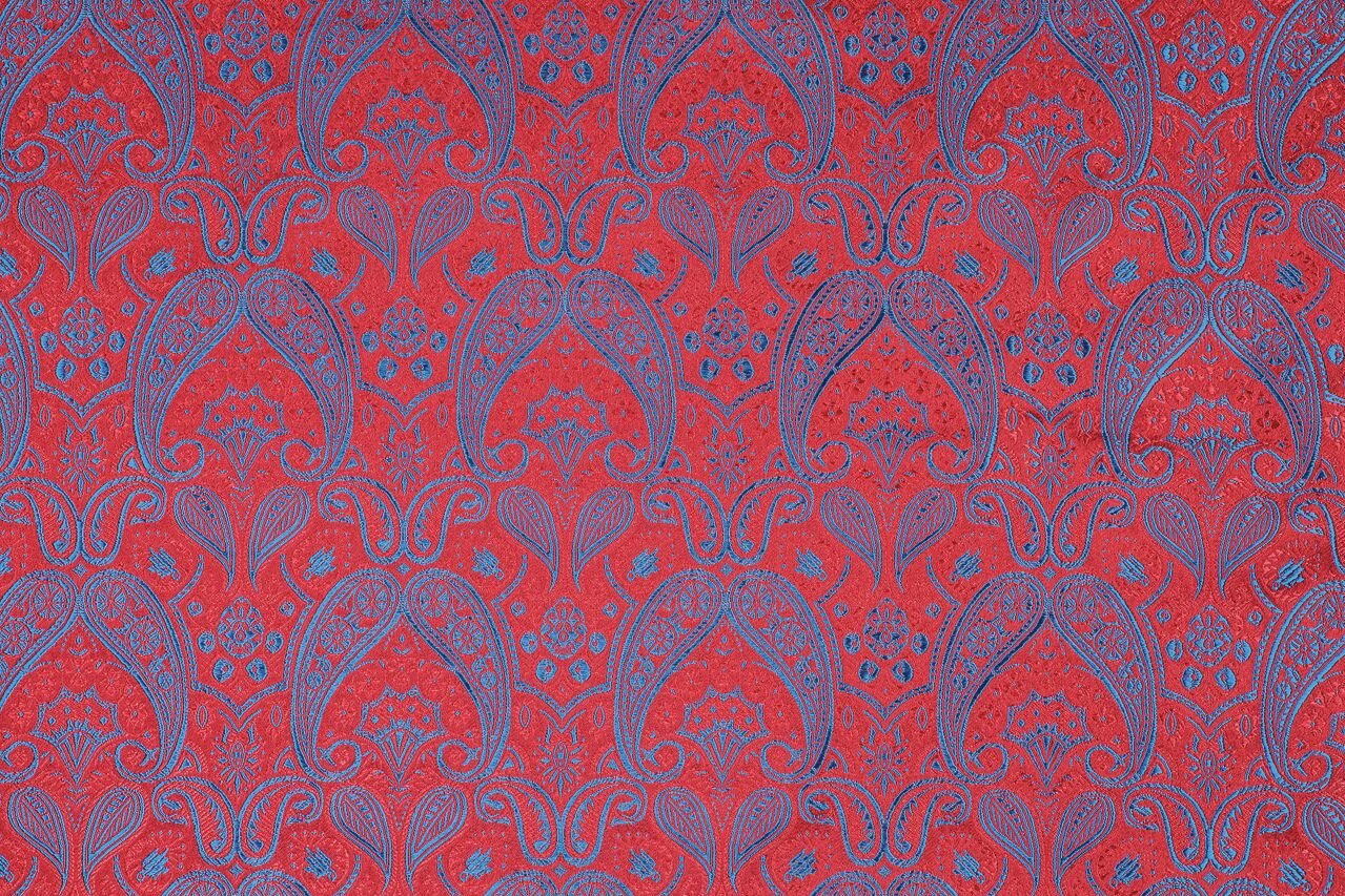 Luxusní pevná látka s pečlivě vytkávaným vzorem v červeno-modré barvě. Brokát se hodí na nesplývavé, vypasované střihy nebo oděvy které mají držet tvar jako jsou společenské šaty a sukně, korzety, kabátky, saka a bundy. Ušijete z něj také krásnou kabelku, kravatu či motýlka nebo okrasný povlak na polštář či závěs.