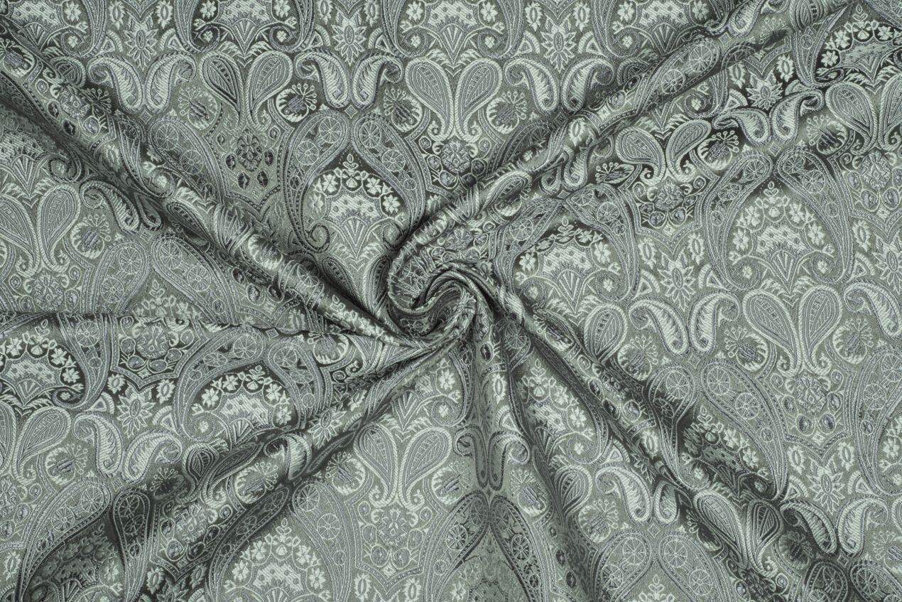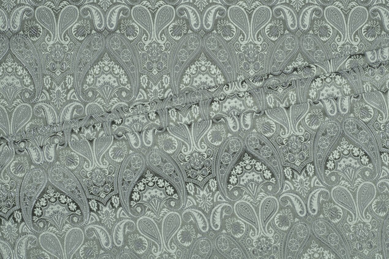 Luxusní pevná látka s pečlivě vytkávaným vzorem ve stříbrno-šedé barvě. Brokát se hodí na nesplývavé, vypasované střihy nebo oděvy které mají držet tvar jako jsou společenské šaty a sukně, korzety, kabátky, saka a bundy. Ušijete z něj také krásnou kabelku, kravatu či motýlka nebo okrasný povlak na polštář či závěs.