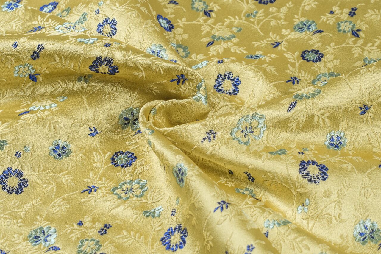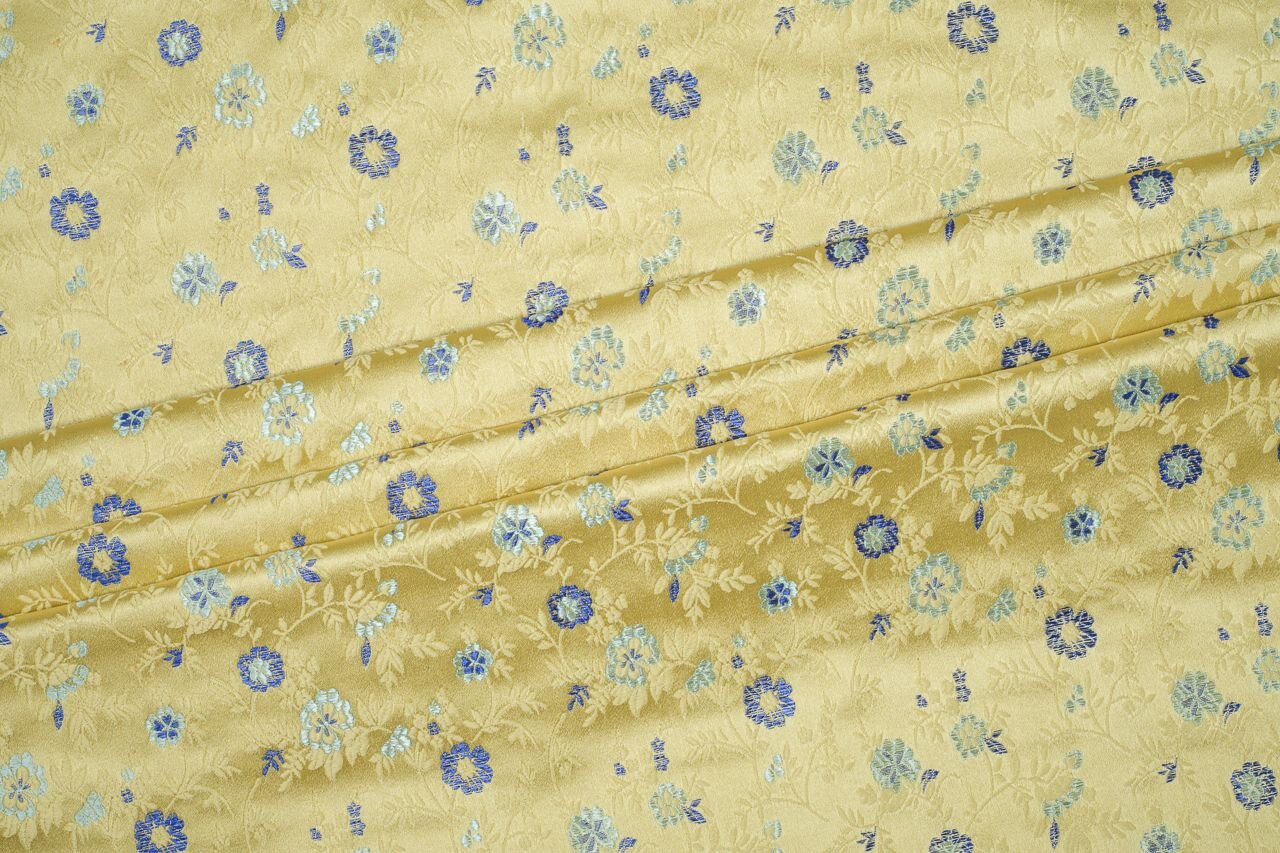 Luxusní pevná látka s pečlivě vytkávaným vzorem ve zlaté a modré barvě. Brokát se hodí na nesplývavé, vypasované střihy nebo oděvy které mají držet tvar jako jsou společenské šaty a sukně, korzety, kabátky, saka a bundy. Ušijete z něj také krásnou kabelku, kravatu či motýlka nebo okrasný povlak na polštář či závěs.
