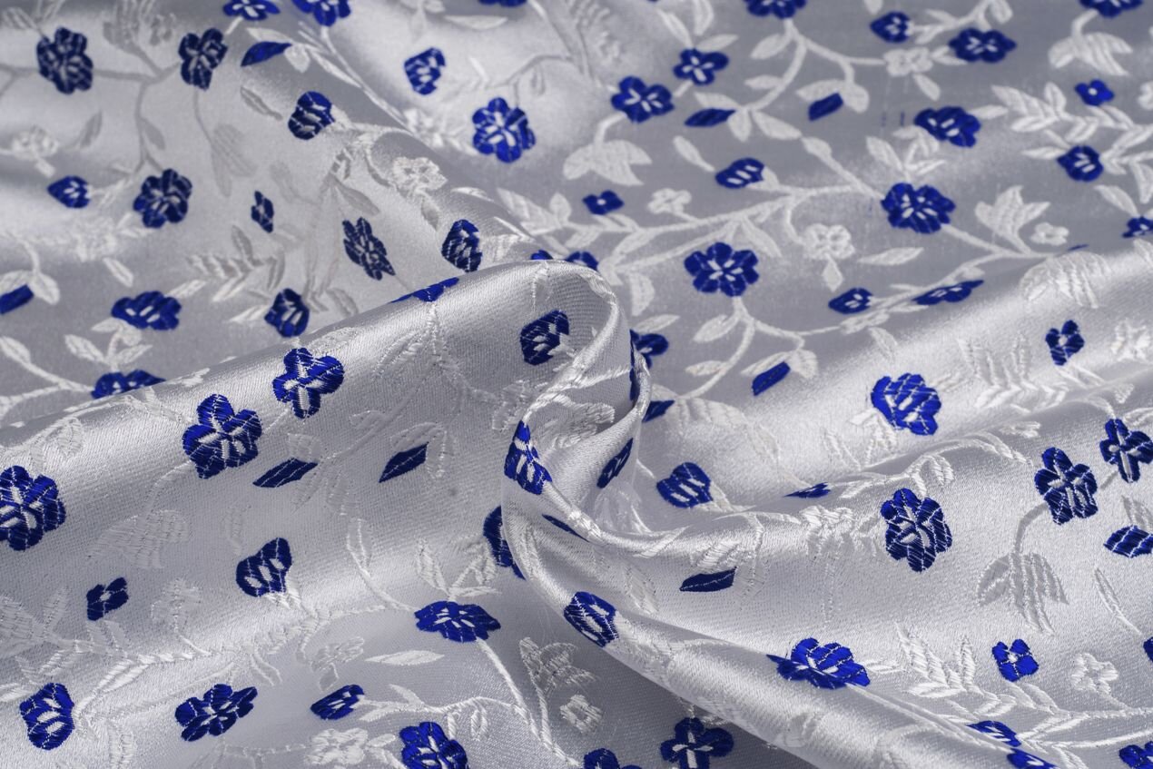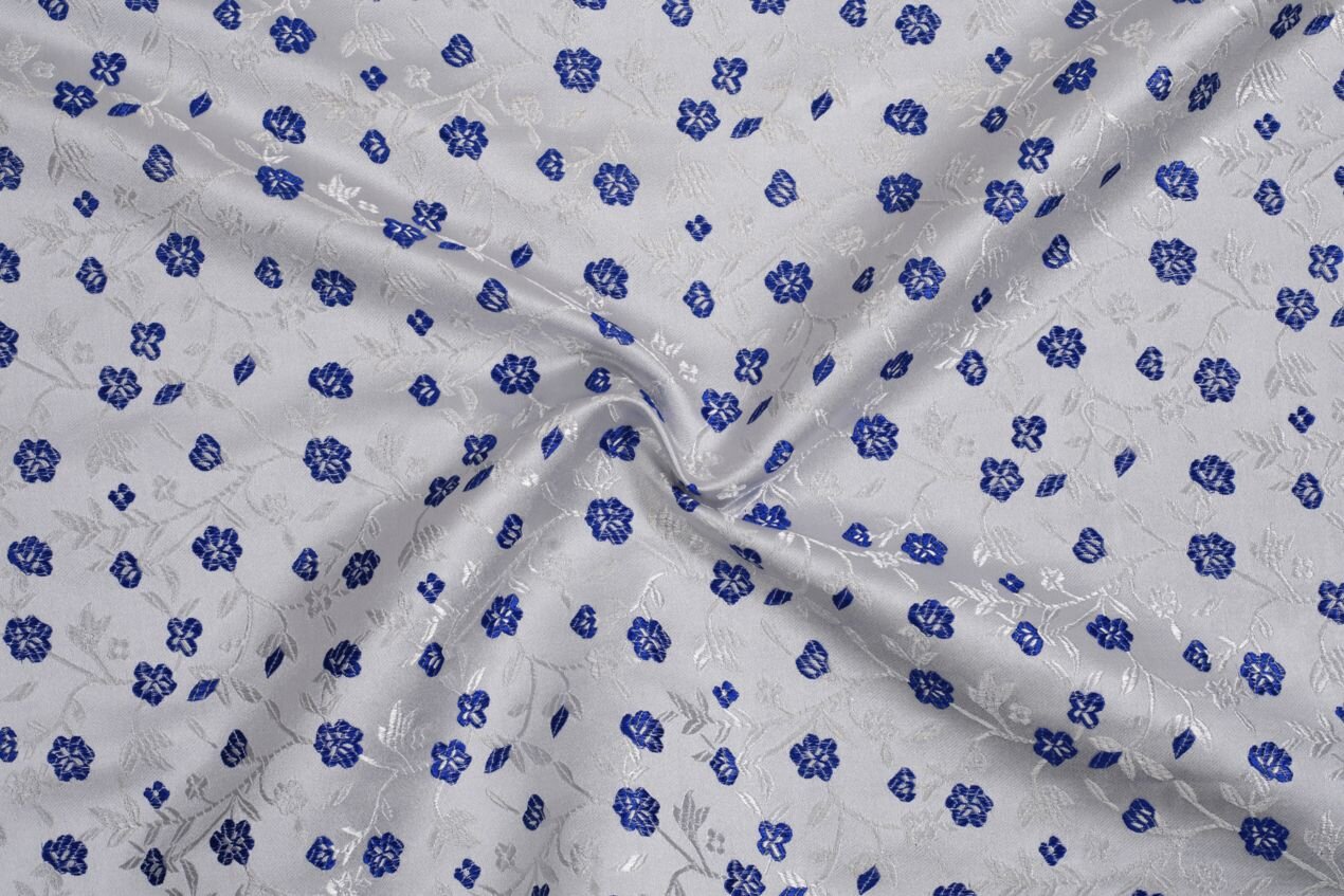 Luxusní pevná látka s pečlivě vytkávaným vzorem v modro-stříbrné barvě. Brokát se hodí na nesplývavé, vypasované střihy nebo oděvy které mají držet tvar jako jsou společenské šaty a sukně, korzety, kabátky, saka a bundy. Ušijete z něj také krásnou kabelku, kravatu či motýlka nebo okrasný povlak na polštář či závěs.