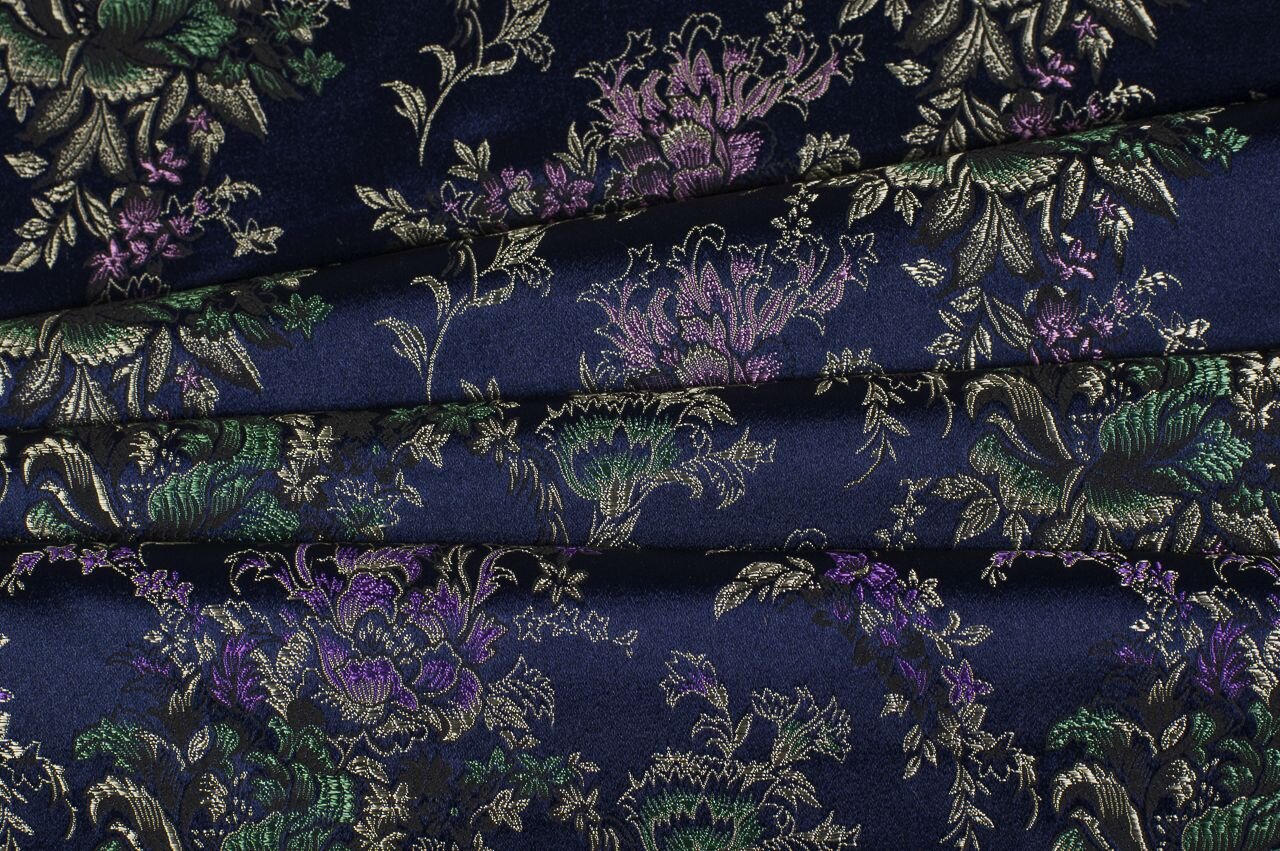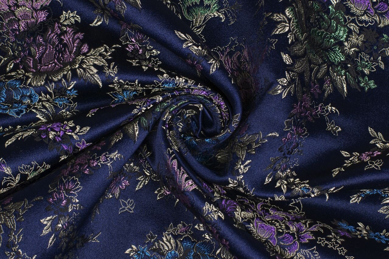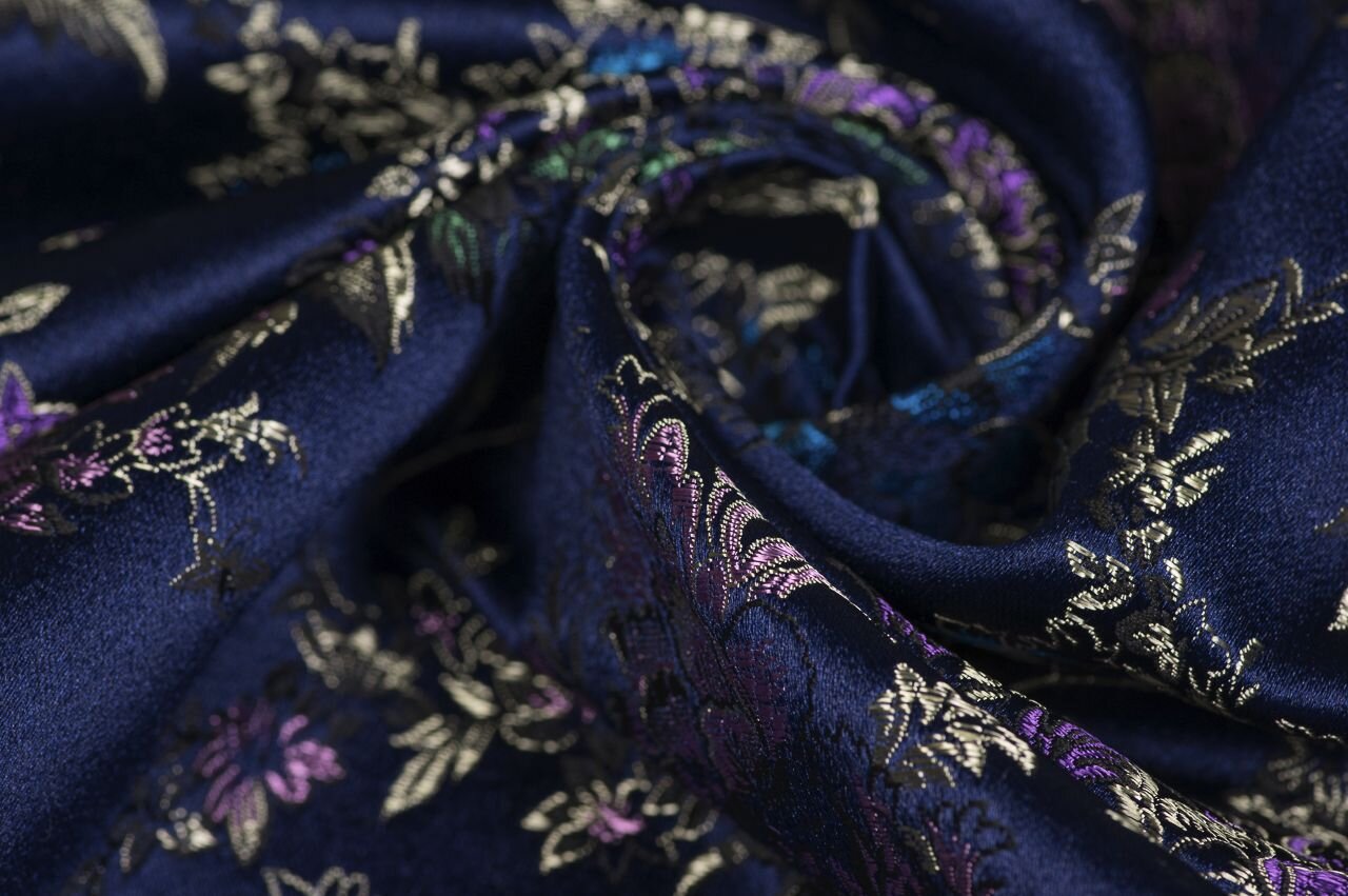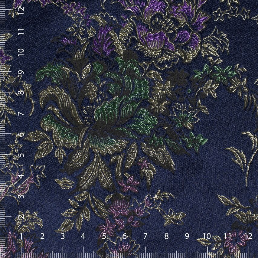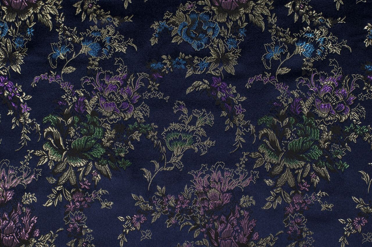 Luxusní pevná látka s pečlivě vytkávaným vzorem v tmavě modré barvě. Brokát se hodí na nesplývavé, vypasované střihy nebo oděvy které mají držet tvar jako jsou společenské šaty a sukně, korzety, kabátky, saka a bundy. Ušijete z něj také krásnou kabelku, kravatu či motýlka nebo okrasný povlak na polštář či závěs.