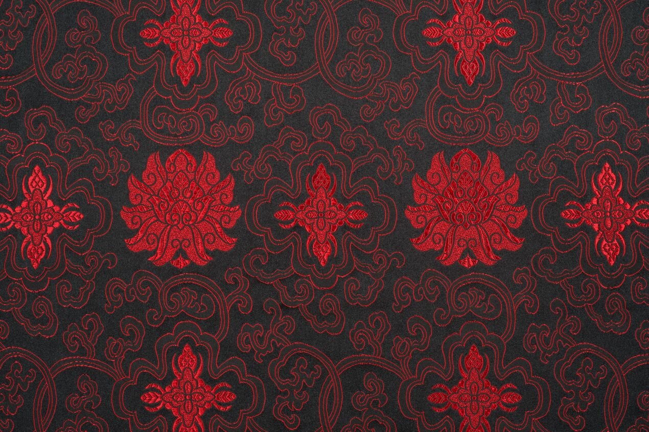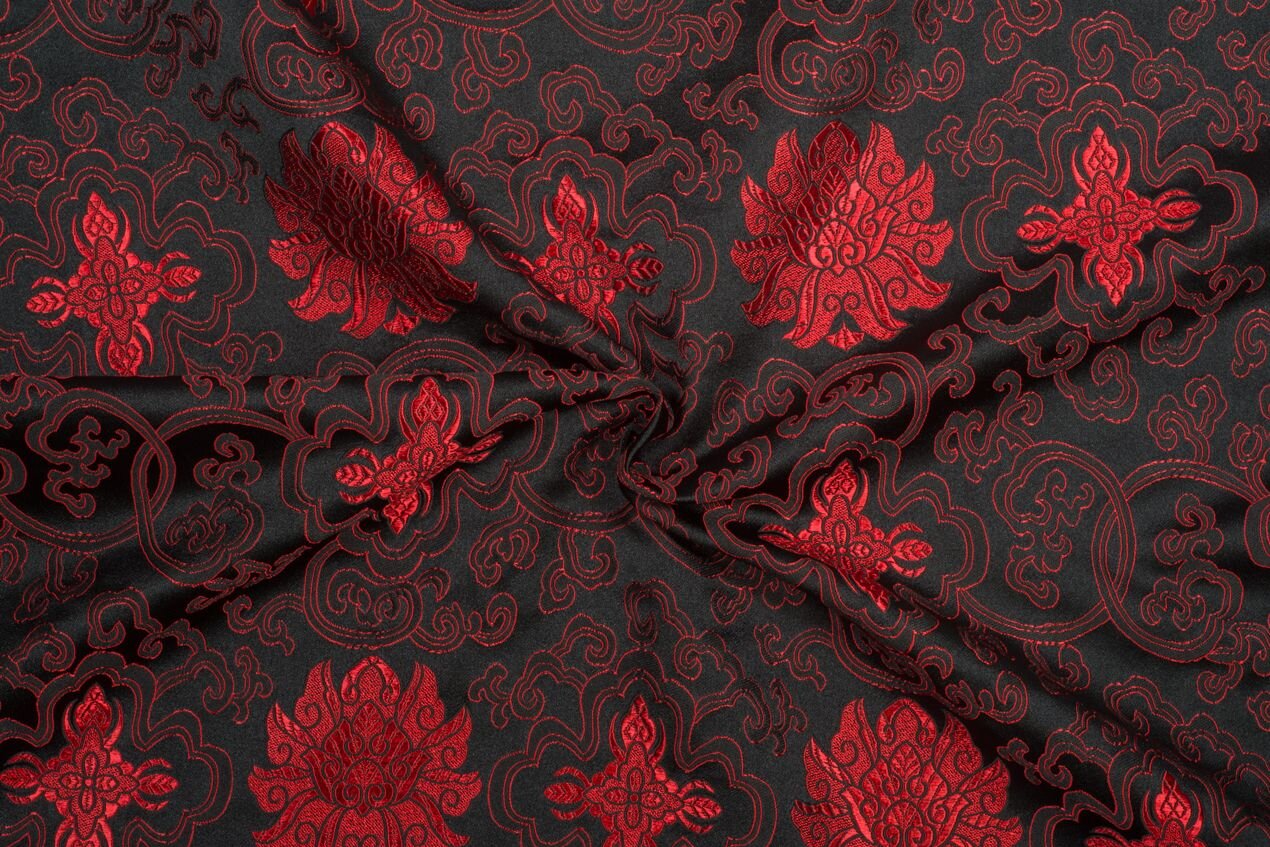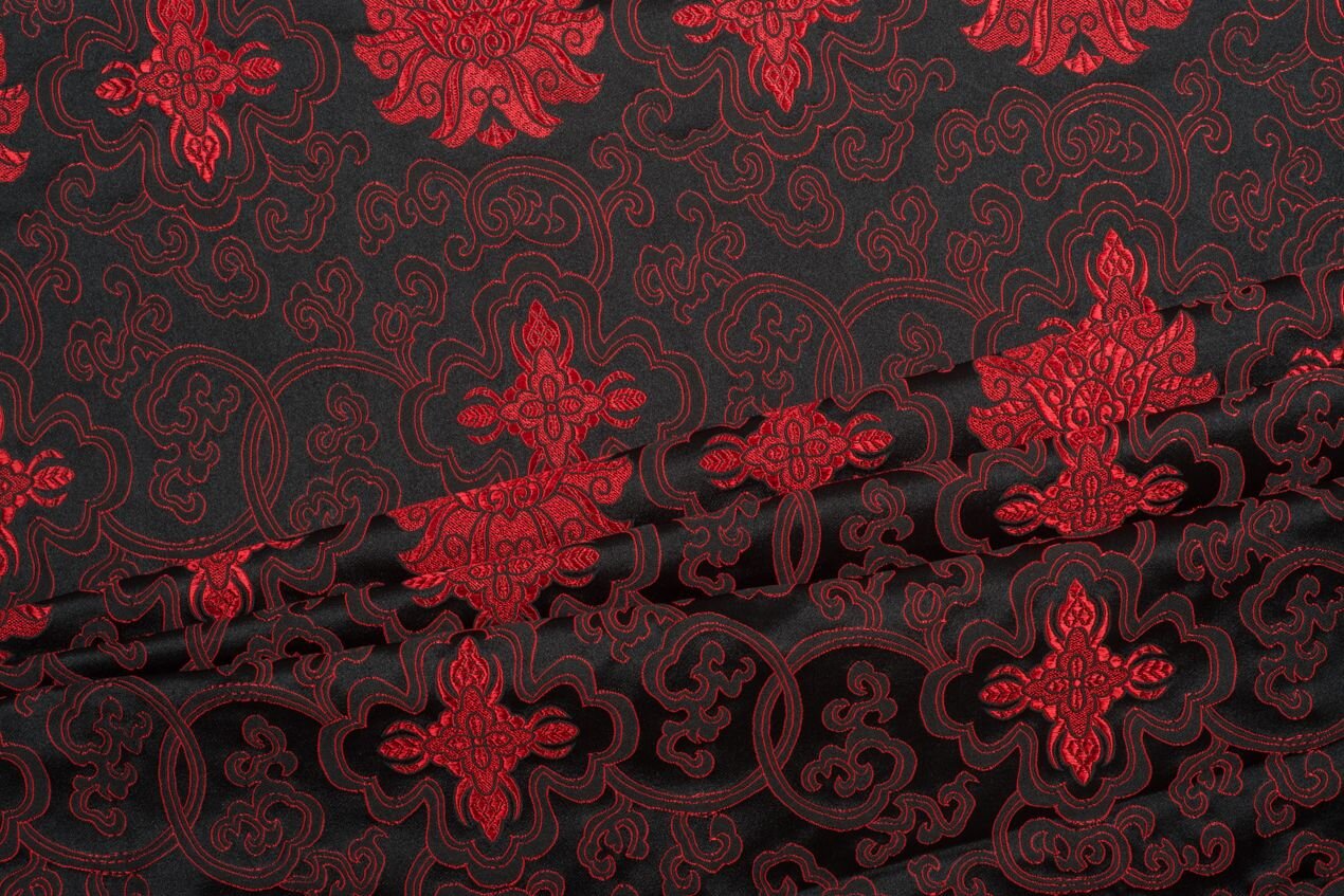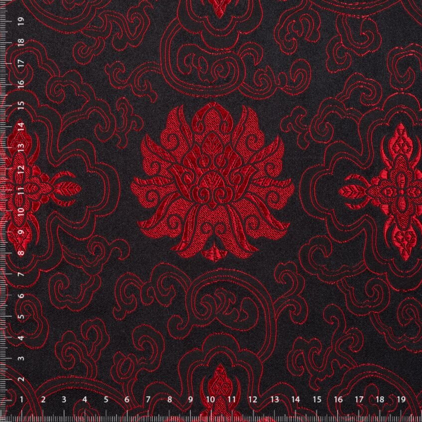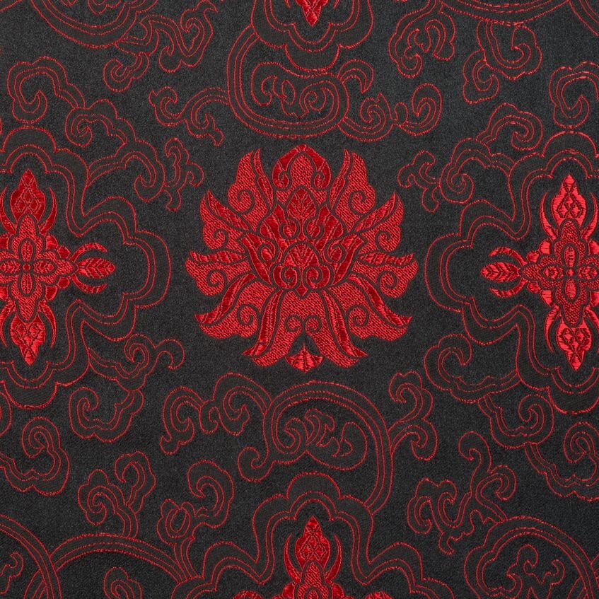 Luxusní pevná látka s pečlivě vytkávaným vzorem v červeno-černé barvě. Brokát se hodí na nesplývavé, vypasované střihy nebo oděvy které mají držet tvar jako jsou společenské šaty a sukně, korzety, kabátky, saka a bundy. Ušijete z něj také krásnou kabelku, kravatu či motýlka nebo okrasný povlak na polštář či závěs.