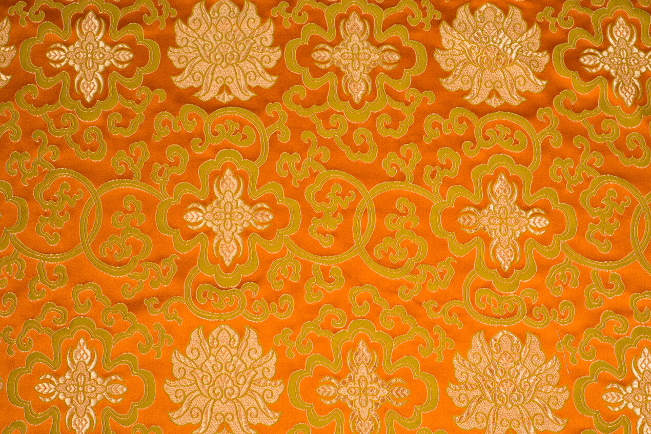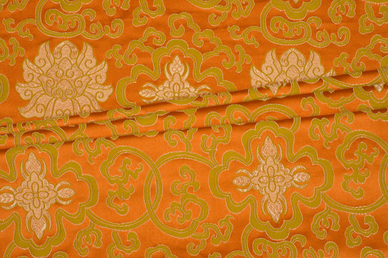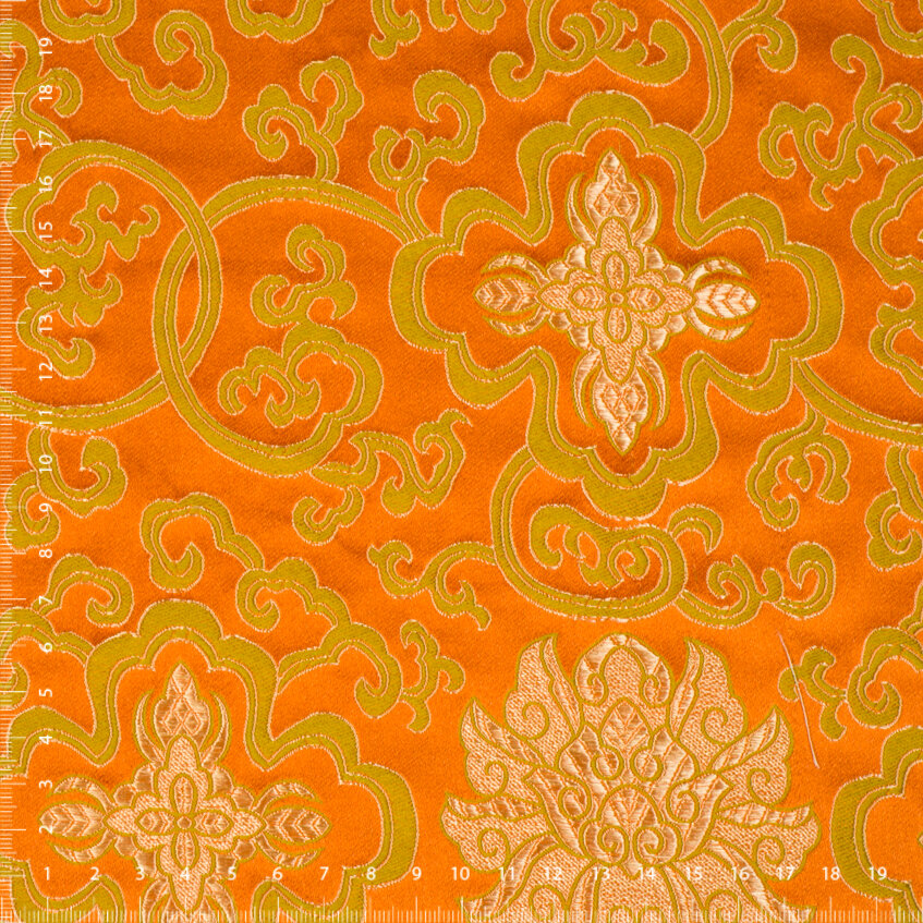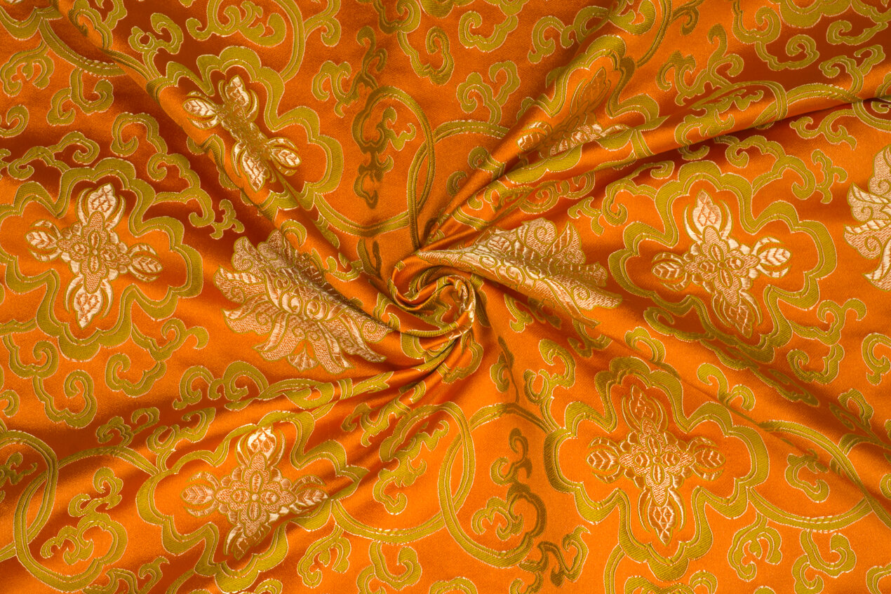 Luxusní pevná látka s pečlivě vytkávaným vzorem v oranžové barvě. Brokát se hodí na nesplývavé, vypasované střihy nebo oděvy které mají držet tvar jako jsou společenské šaty a sukně, korzety, kabátky, saka a bundy. Ušijete z něj také krásnou kabelku, kravatu či motýlka nebo okrasný povlak na polštář či závěs.