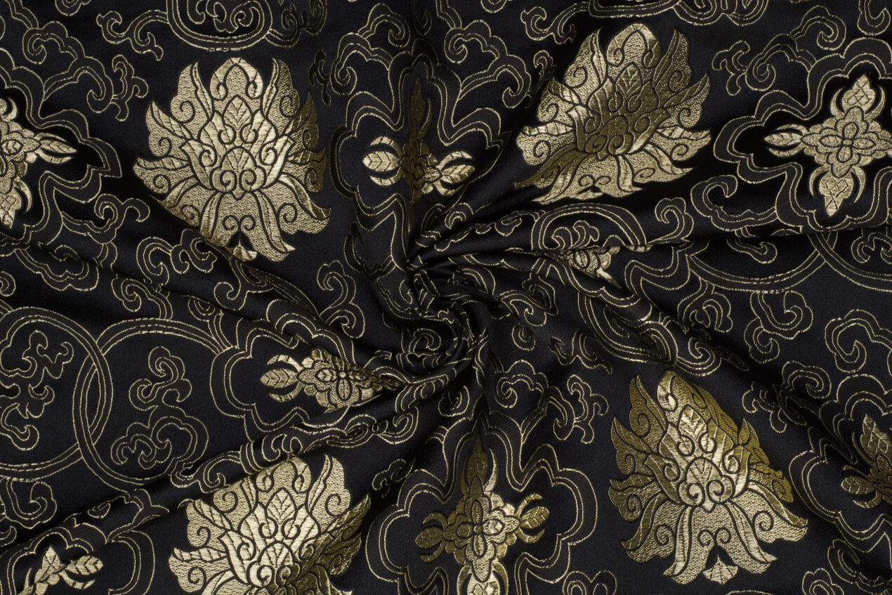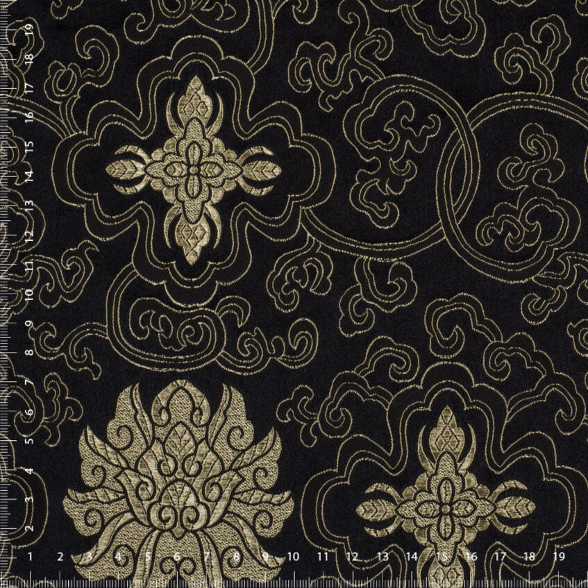 Luxusní pevná látka s pečlivě vytkávaným vzorem v černo-zlaté barvě. Brokát se hodí na nesplývavé, vypasované střihy nebo oděvy které mají držet tvar jako jsou společenské šaty a sukně, korzety, kabátky, saka a bundy. Ušijete z něj také krásnou kabelku, kravatu či motýlka nebo okrasný povlak na polštář či závěs.