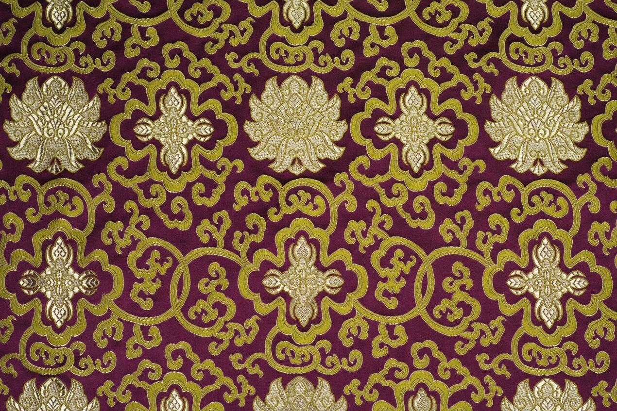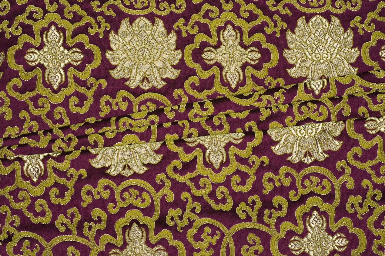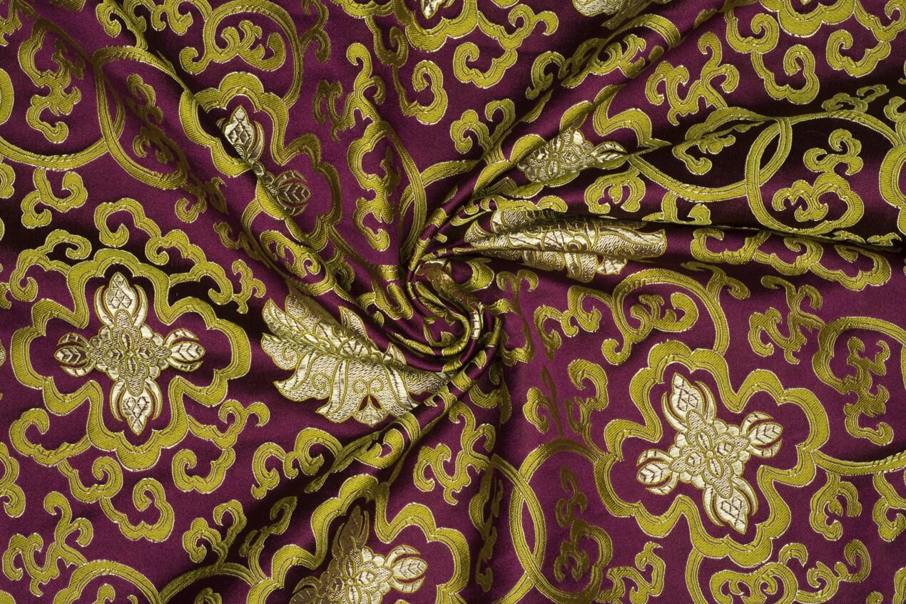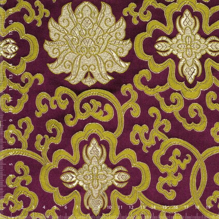 Luxusní pevná látka s pečlivě vytkávaným vzorem ve zlato-švestkové barvě. Brokát se hodí na nesplývavé, vypasované střihy nebo oděvy které mají držet tvar jako jsou společenské šaty a sukně, korzety, kabátky, saka a bundy. Ušijete z něj také krásnou kabelku, kravatu či motýlka nebo okrasný povlak na polštář či závěs.