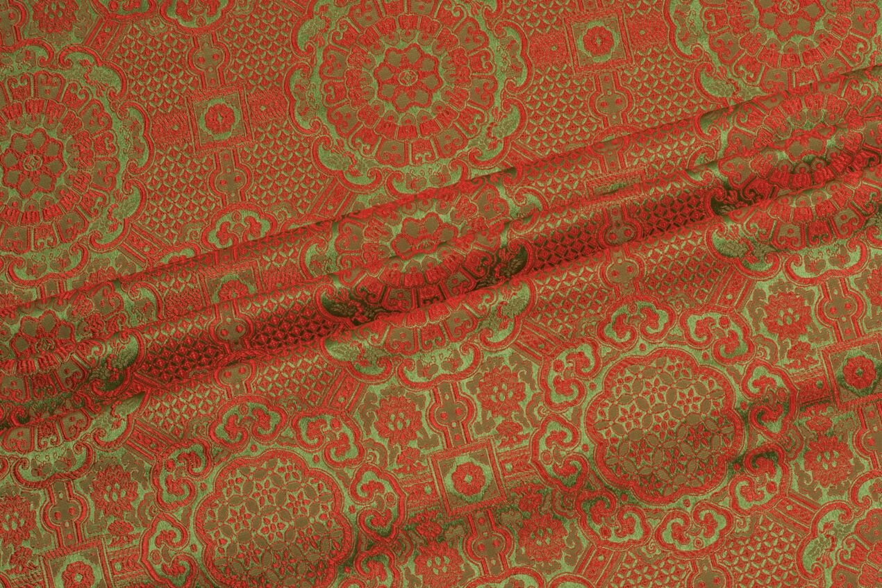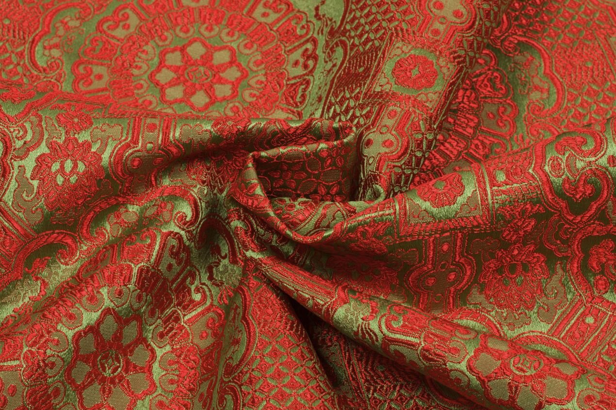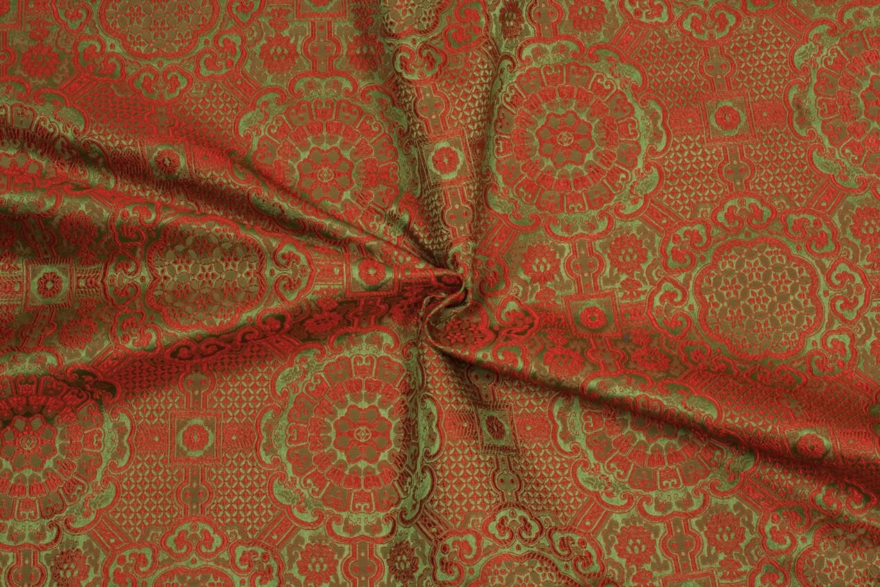 Luxusní pevná látka s pečlivě vytkávaným vzorem v červeno-olivově zelené barvě. Brokát se hodí na nesplývavé, vypasované střihy nebo oděvy které mají držet tvar jako jsou společenské šaty a sukně, korzety, kabátky, saka a bundy. Ušijete z něj také krásnou kabelku, kravatu či motýlka nebo okrasný povlak na polštář či závěs.