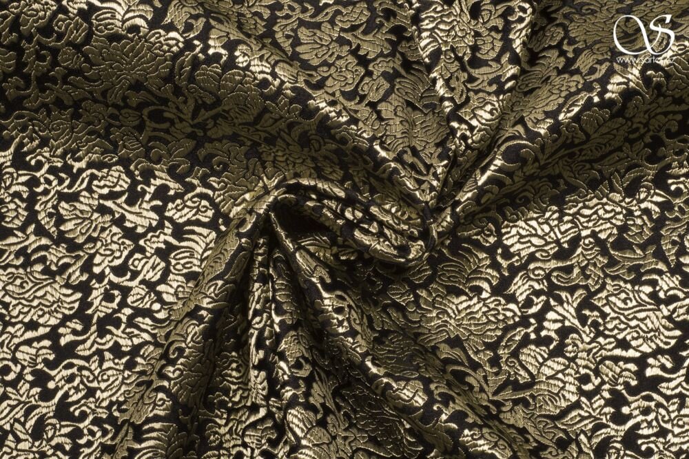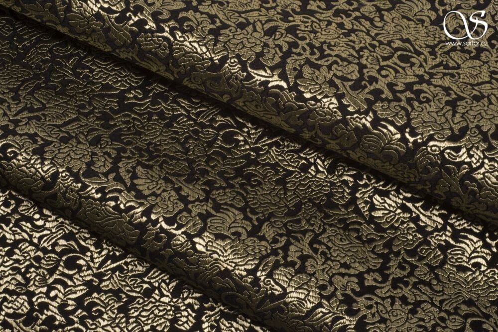 Luxusní pevná látka s pečlivě vytkávaným vzorem v černo-zlaté barvě. Brokát se hodí na nesplývavé, vypasované střihy nebo oděvy které mají držet tvar jako jsou společenské šaty a sukně, korzety, kabátky, saka a bundy. Ušijete z něj také krásnou kabelku, kravatu či motýlka nebo okrasný povlak na polštář či závěs.