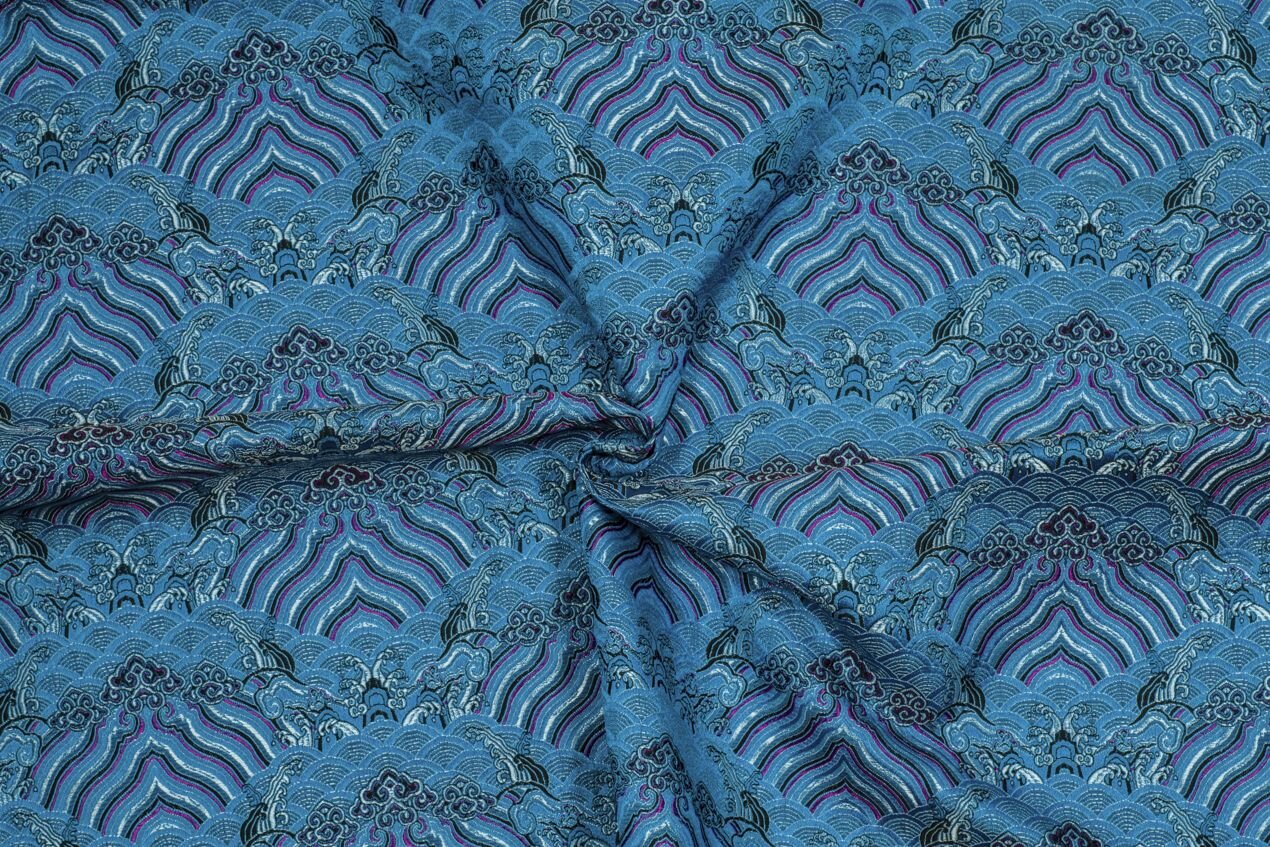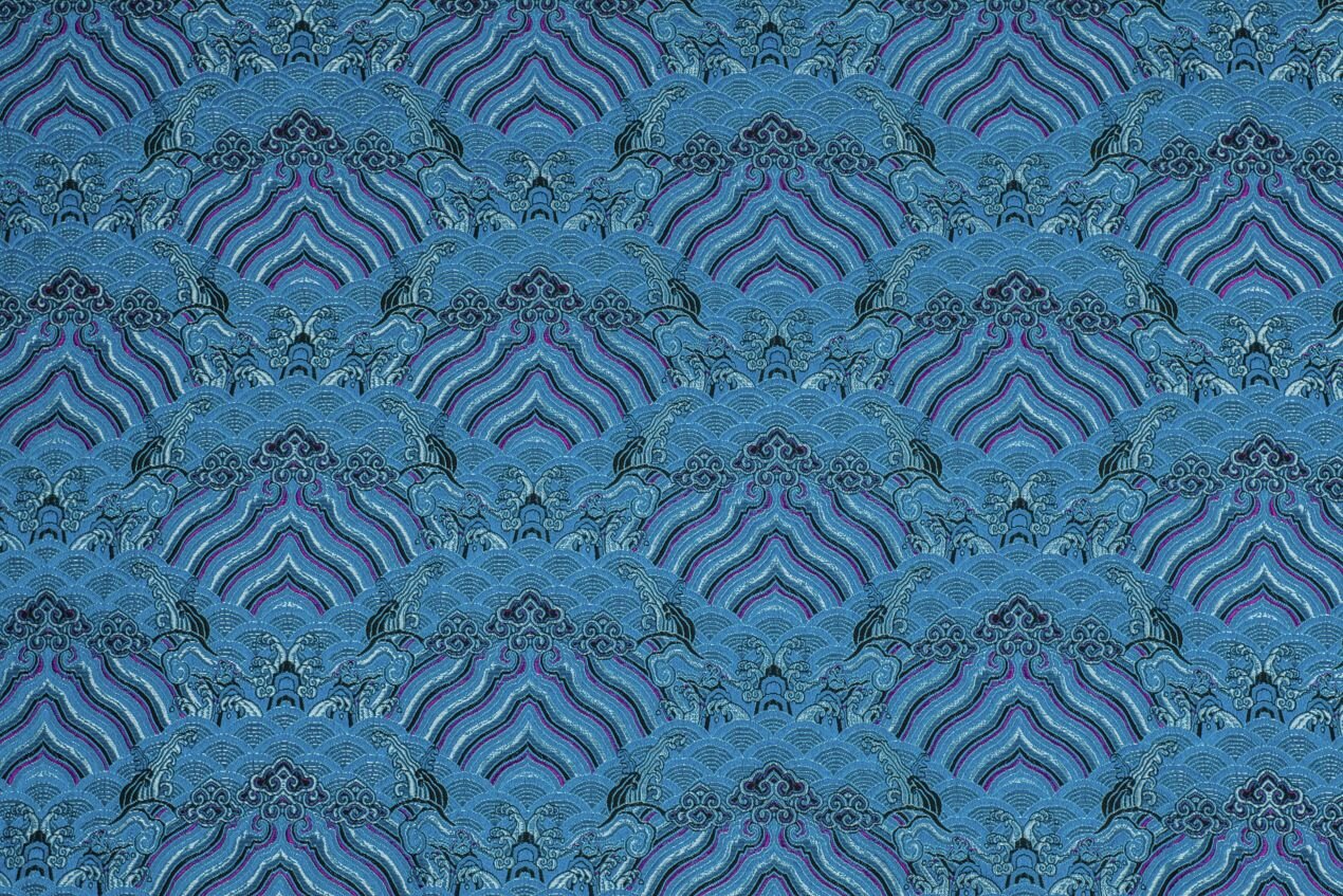 Luxusní pevná látka s pečlivě vytkávaným vzorem v modré barvě. Brokát se hodí na nesplývavé, vypasované střihy nebo oděvy které mají držet tvar jako jsou společenské šaty a sukně, korzety, kabátky, saka a bundy. Ušijete z něj také krásnou kabelku, kravatu či motýlka nebo okrasný povlak na polštář či závěs.