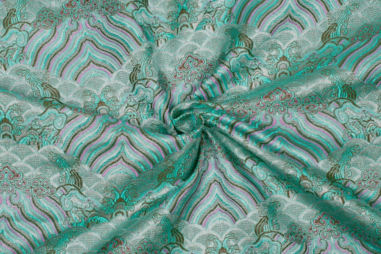 Luxusní pevná látka s pečlivě vytkávaným vzorem v růžové a modré barvě. Brokát se hodí na nesplývavé, vypasované střihy nebo oděvy které mají držet tvar jako jsou společenské šaty a sukně, korzety, kabátky, saka a bundy. Ušijete z něj také krásnou kabelku, kravatu či motýlka nebo okrasný povlak na polštář či závěs.