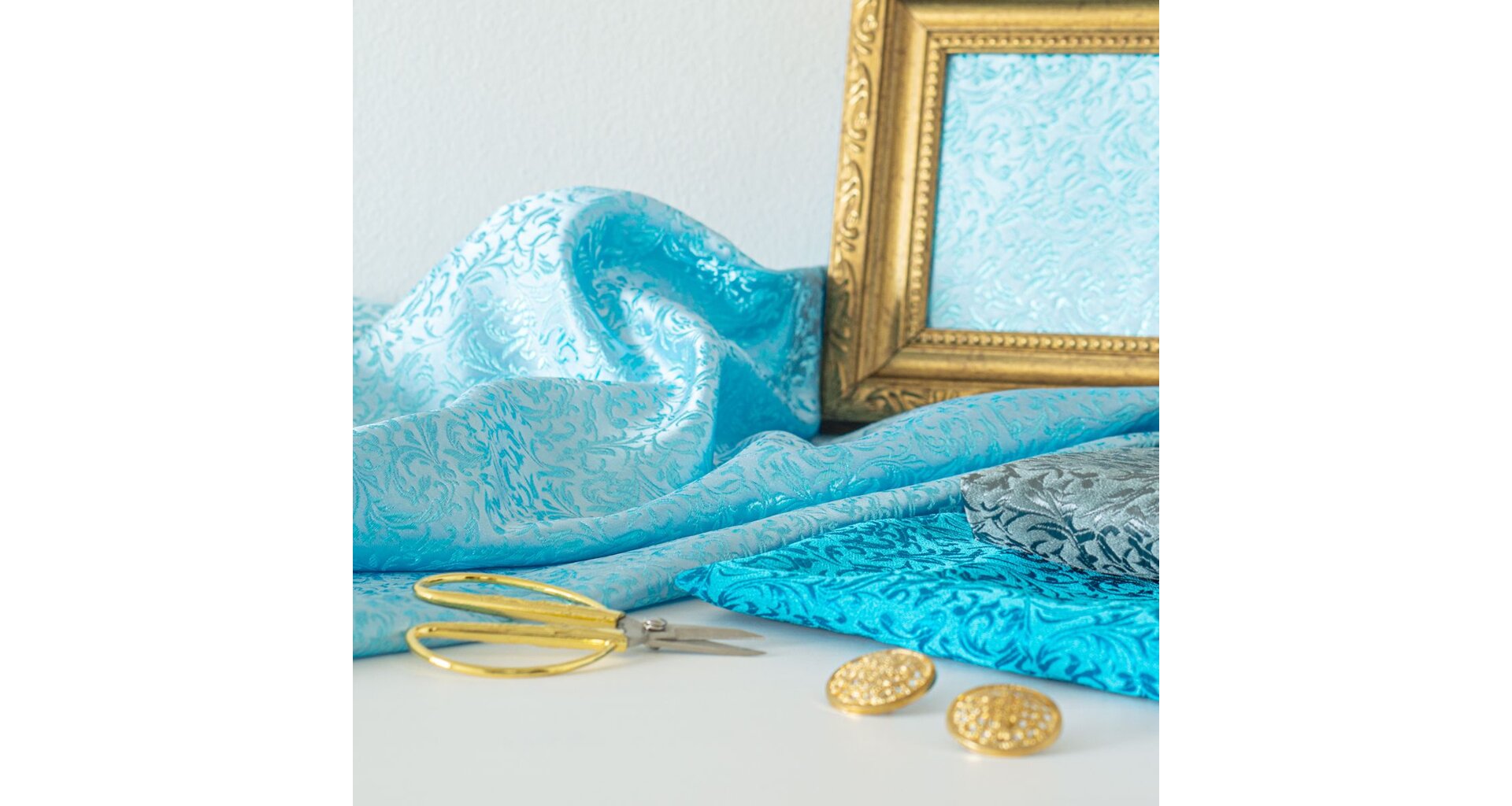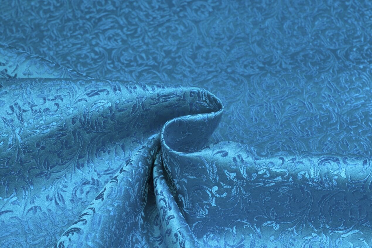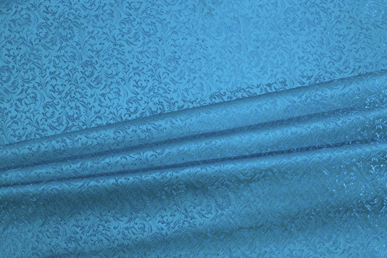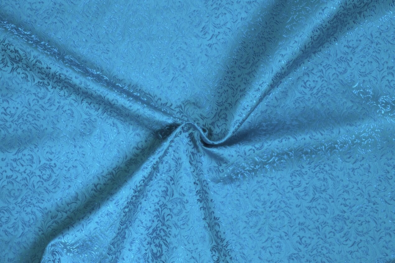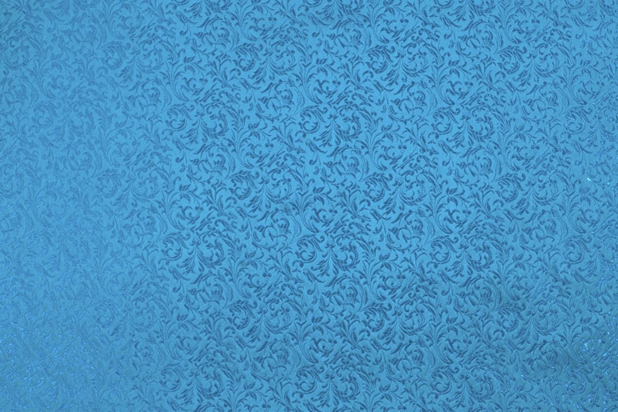 Luxusní pevná látka s pečlivě vytkávaným vzorem v modré barvě. Brokát se hodí na nesplývavé, vypasované střihy nebo oděvy které mají držet tvar jako jsou společenské šaty a sukně, korzety, kabátky, saka a bundy. Ušijete z něj také krásnou kabelku, kravatu či motýlka nebo okrasný povlak na polštář či závěs.