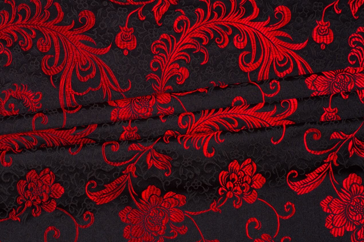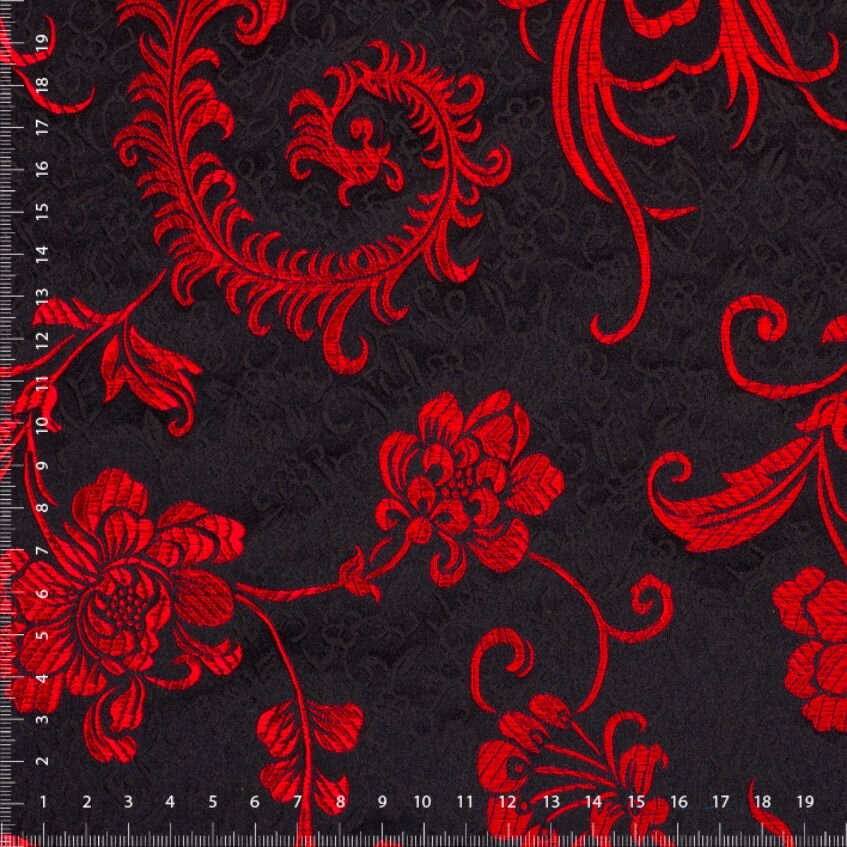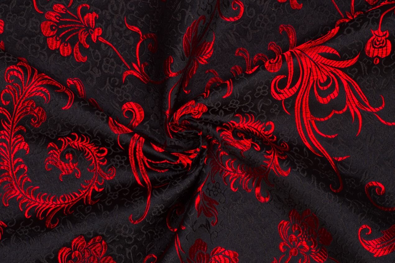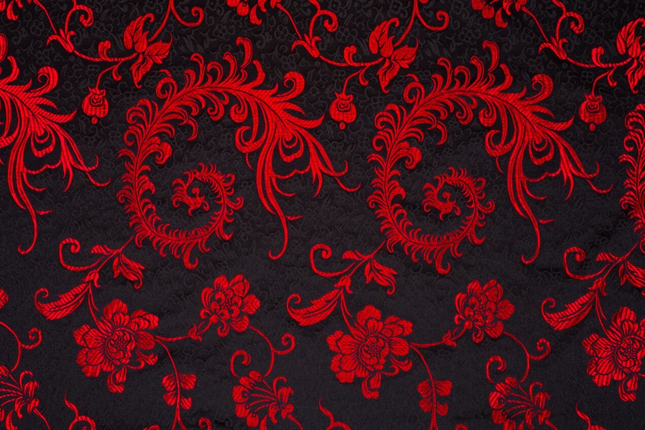 Luxusní pevná látka s pečlivě vytkávaným vzorem v červené a černé barvě. Brokát se hodí na nesplývavé, vypasované střihy nebo oděvy které mají držet tvar jako jsou společenské šaty a sukně, korzety, kabátky, saka a bundy. Ušijete z něj také krásnou kabelku, kravatu či motýlka nebo okrasný povlak na polštář či závěs.