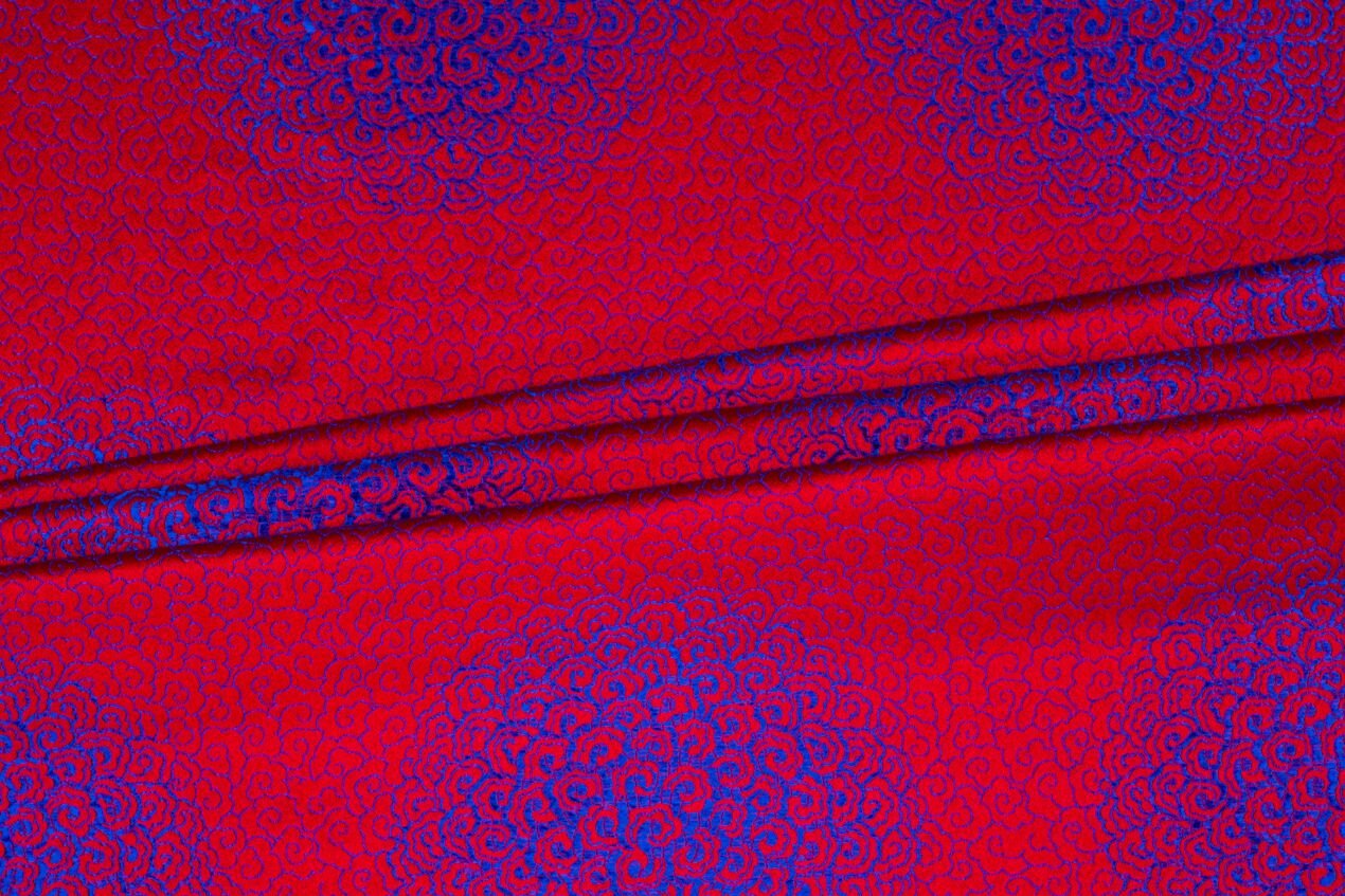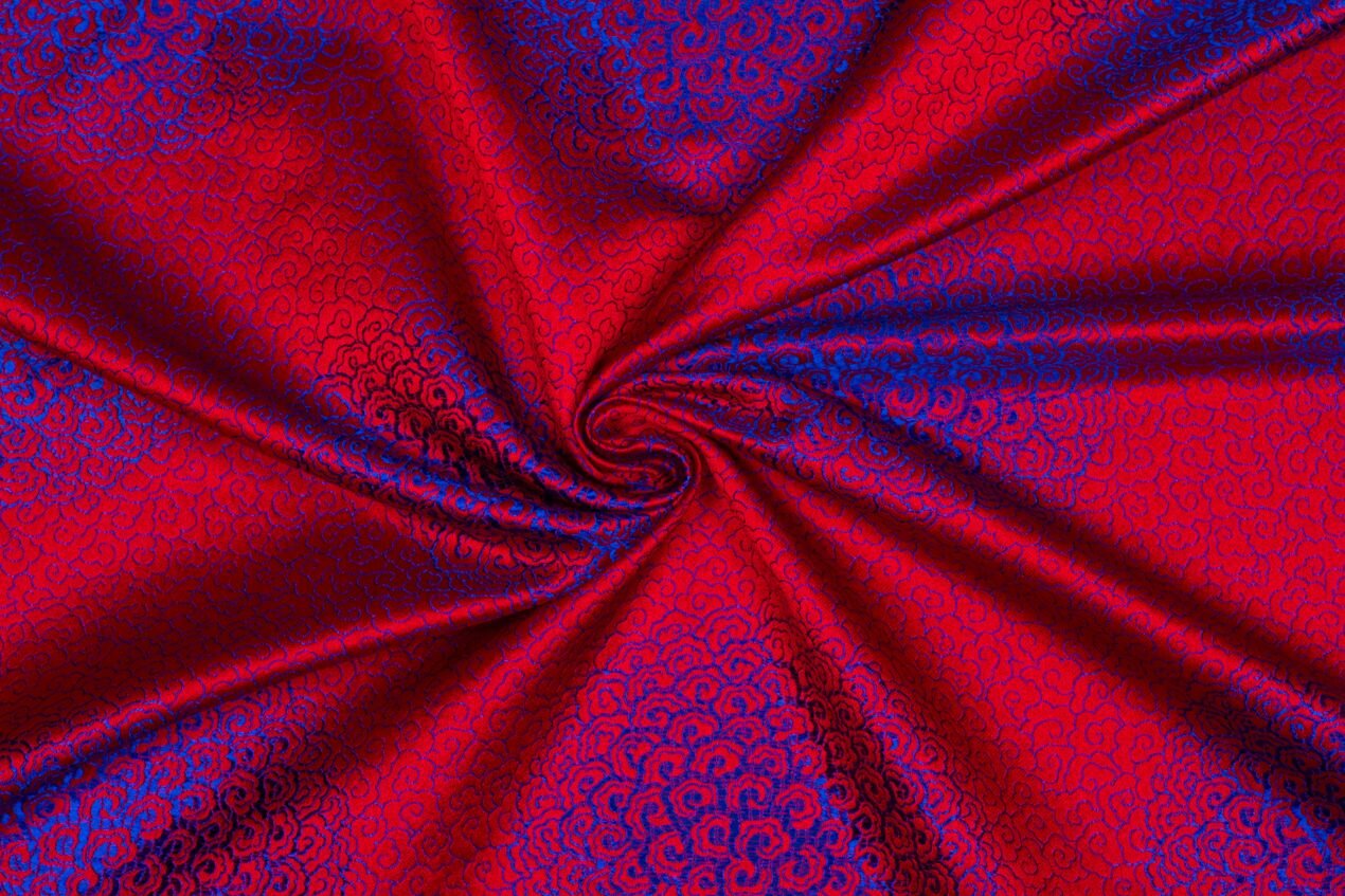 Luxusní pevná látka s pečlivě vytkávaným vzorem v modro-červené barvě. Brokát se hodí na nesplývavé, vypasované střihy nebo oděvy které mají držet tvar jako jsou společenské šaty a sukně, korzety, kabátky, saka a bundy. Ušijete z něj také krásnou kabelku, kravatu či motýlka nebo okrasný povlak na polštář či závěs.