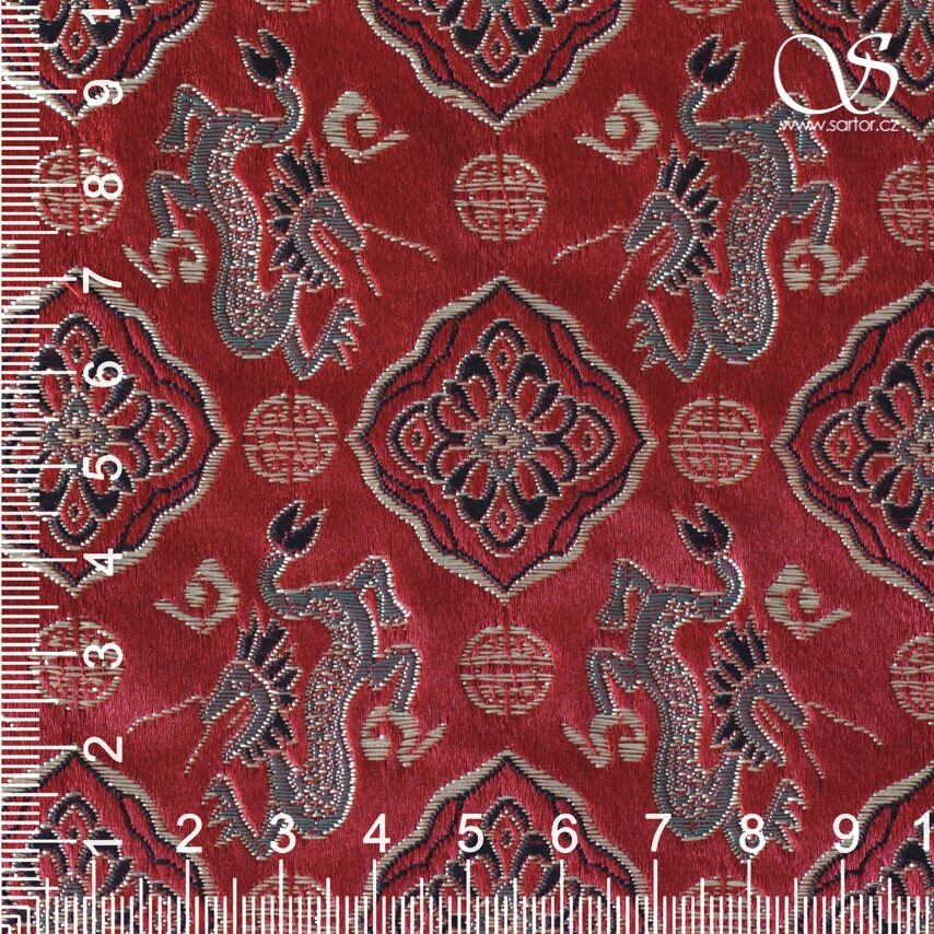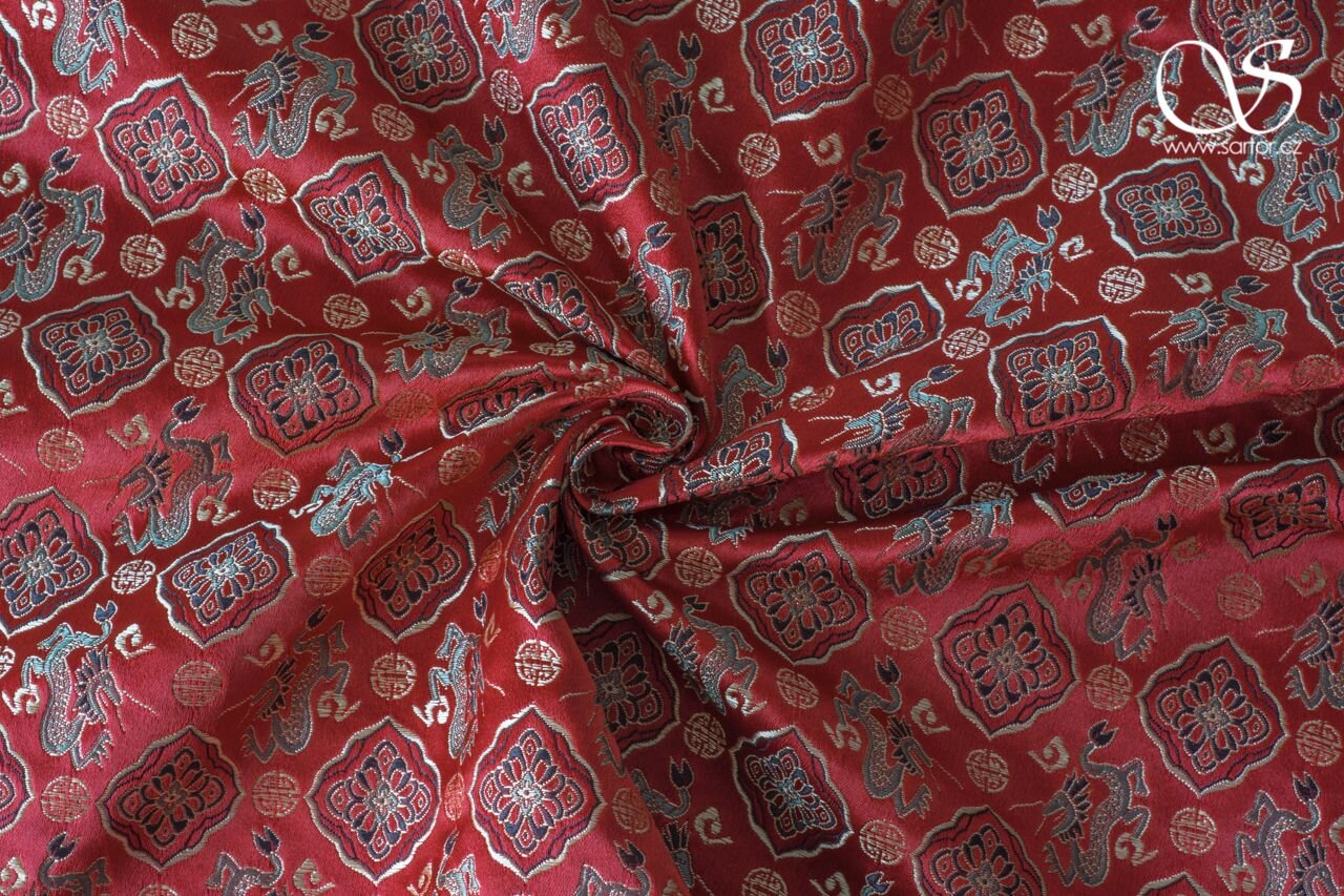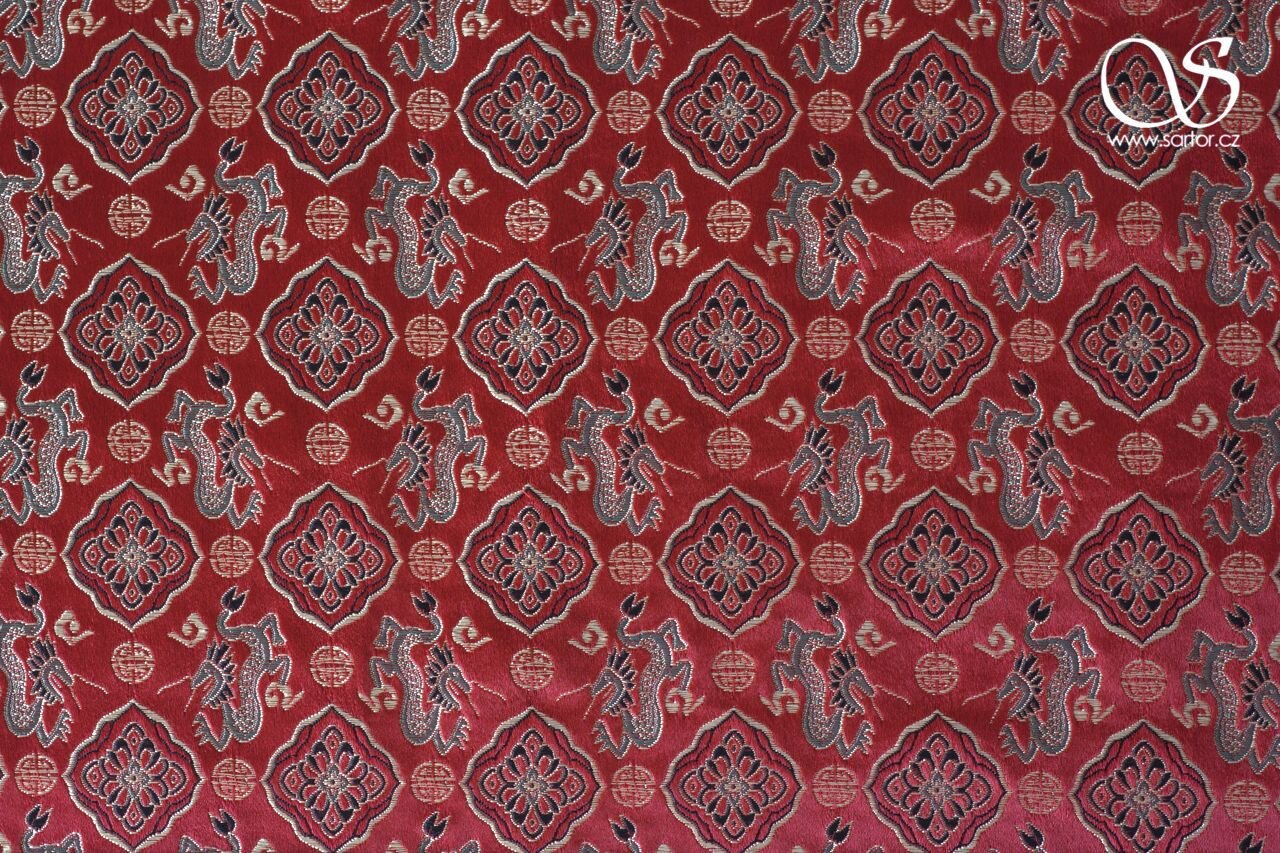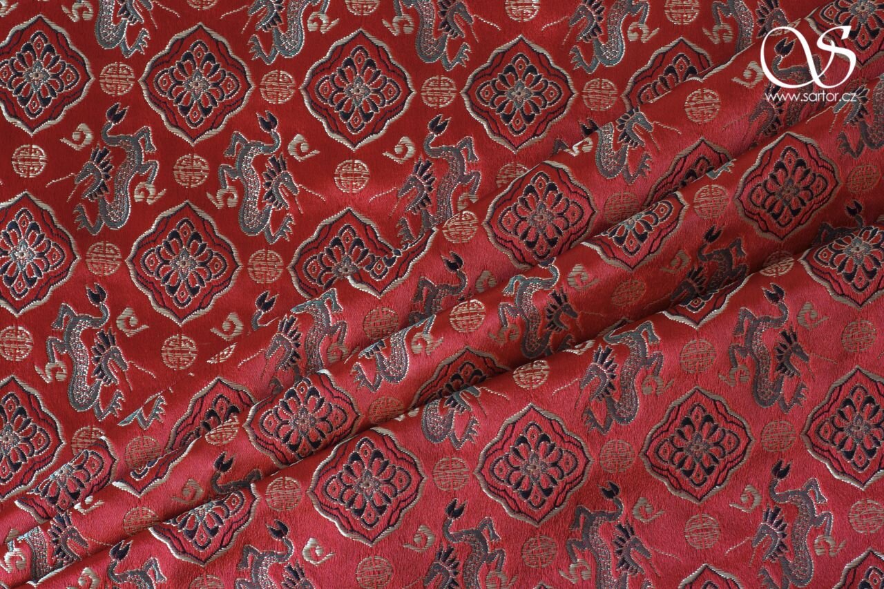 Luxusní pevná látka s pečlivě vytkávaným vzorem v červeno-zlaté barvě. Brokát se hodí na nesplývavé, vypasované střihy nebo oděvy které mají držet tvar jako jsou společenské šaty a sukně, korzety, kabátky, saka a bundy. Ušijete z něj také krásnou kabelku, kravatu či motýlka nebo okrasný povlak na polštář či závěs.