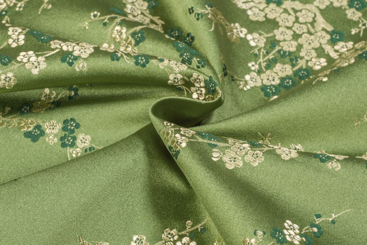 Luxusní pevná látka s pečlivě vytkávaným vzorem ve zlato-olivově zelené barvě. Brokát se hodí na nesplývavé, vypasované střihy nebo oděvy které mají držet tvar jako jsou společenské šaty a sukně, korzety, kabátky, saka a bundy. Ušijete z něj také krásnou kabelku, kravatu či motýlka nebo okrasný povlak na polštář či závěs.