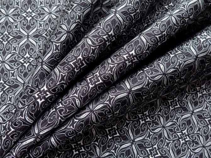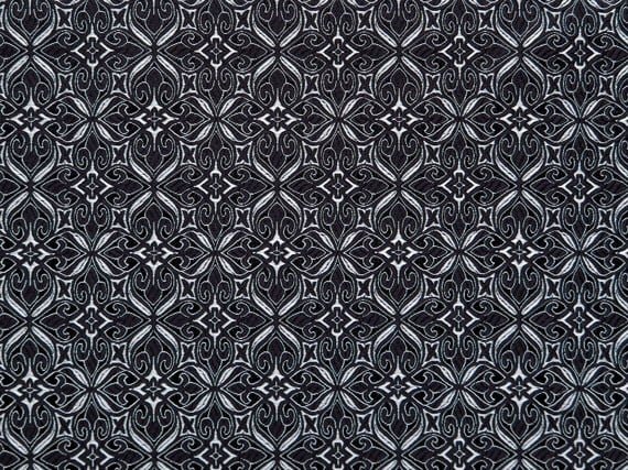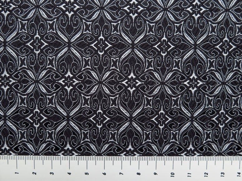 Luxusní pevná látka s pečlivě vytkávaným vzorem v bílé a černé barvě. Brokát se hodí na nesplývavé, vypasované střihy nebo oděvy které mají držet tvar jako jsou společenské šaty a sukně, korzety, kabátky, saka a bundy. Ušijete z něj také krásnou kabelku, kravatu či motýlka nebo okrasný povlak na polštář či závěs.