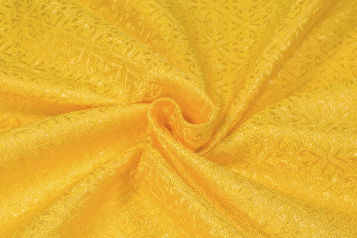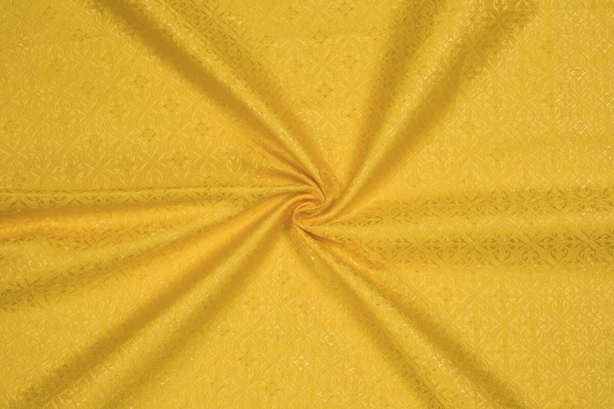 Luxusní pevná látka s pečlivě vytkávaným vzorem ve žluté barvě. Brokát se hodí na nesplývavé, vypasované střihy nebo oděvy které mají držet tvar jako jsou společenské šaty a sukně, korzety, kabátky, saka a bundy. Ušijete z něj také krásnou kabelku, kravatu či motýlka nebo okrasný povlak na polštář či závěs.