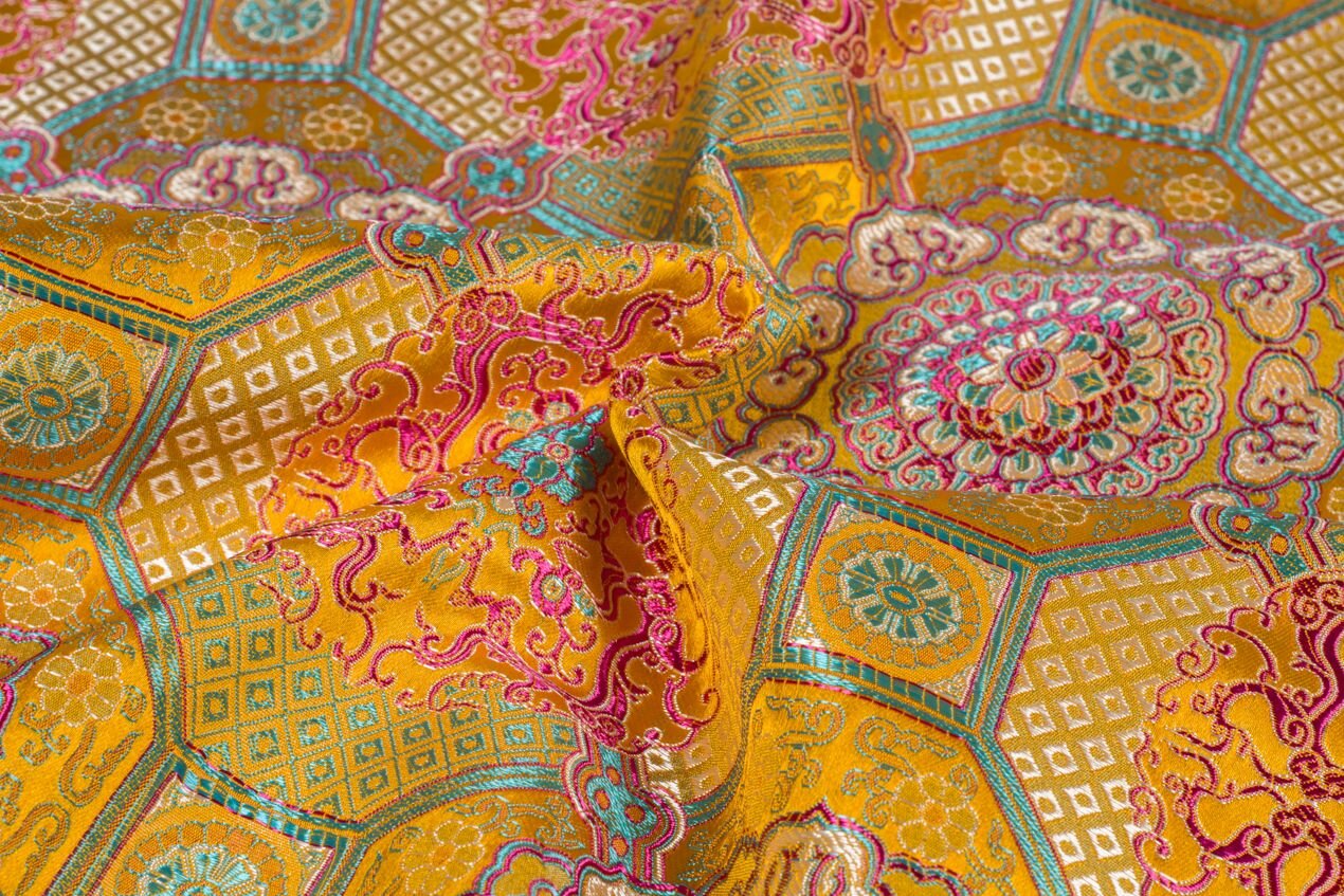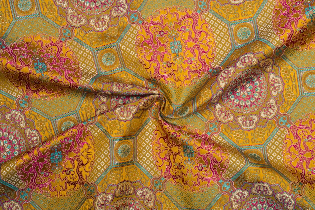 Luxusní pevná látka s pečlivě vytkávaným vzorem v oranžové barvě. Brokát se hodí na nesplývavé, vypasované střihy nebo oděvy které mají držet tvar jako jsou společenské šaty a sukně, korzety, kabátky, saka a bundy. Ušijete z něj také krásnou kabelku, kravatu či motýlka nebo okrasný povlak na polštář či závěs.