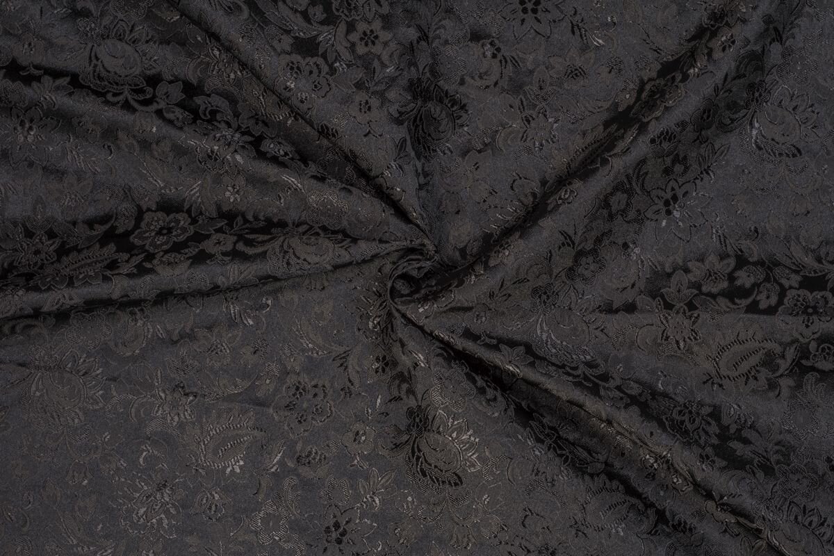 Luxusní pevná látka s pečlivě vytkávaným vzorem v černé barvě. Brokát se hodí na nesplývavé, vypasované střihy nebo oděvy které mají držet tvar jako jsou společenské šaty a sukně, korzety, kabátky, saka a bundy. Ušijete z něj také krásnou kabelku, kravatu či motýlka nebo okrasný povlak na polštář či závěs.