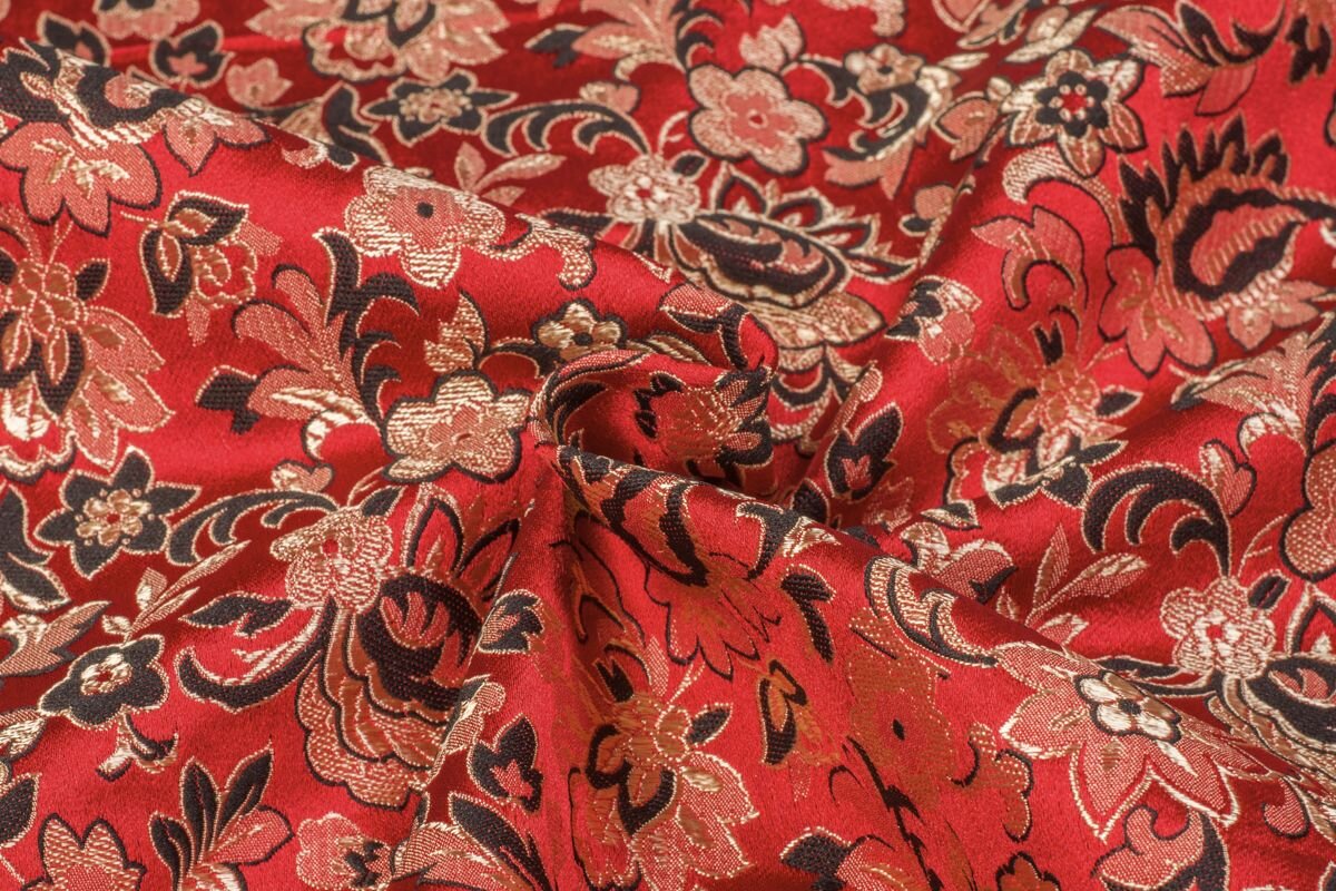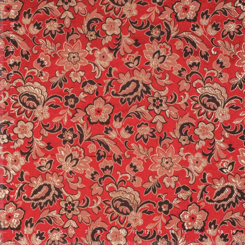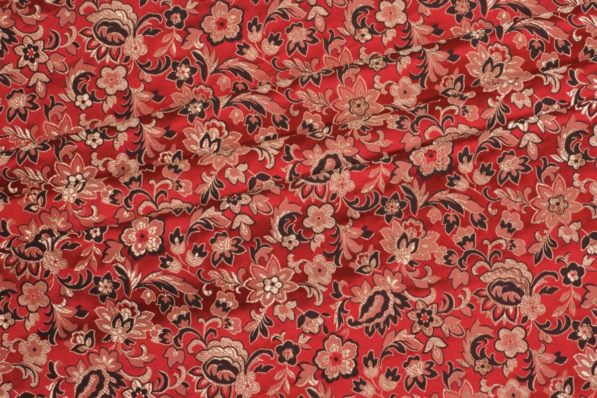Luxusní pevná látka s pečlivě vytkávaným vzorem v červeno-zlaté barvě. Brokát se hodí na nesplývavé, vypasované střihy nebo oděvy které mají držet tvar jako jsou společenské šaty a sukně, korzety, kabátky, saka a bundy. Ušijete z něj také krásnou kabelku, kravatu či motýlka nebo okrasný povlak na polštář či závěs.