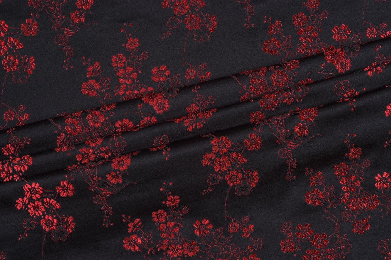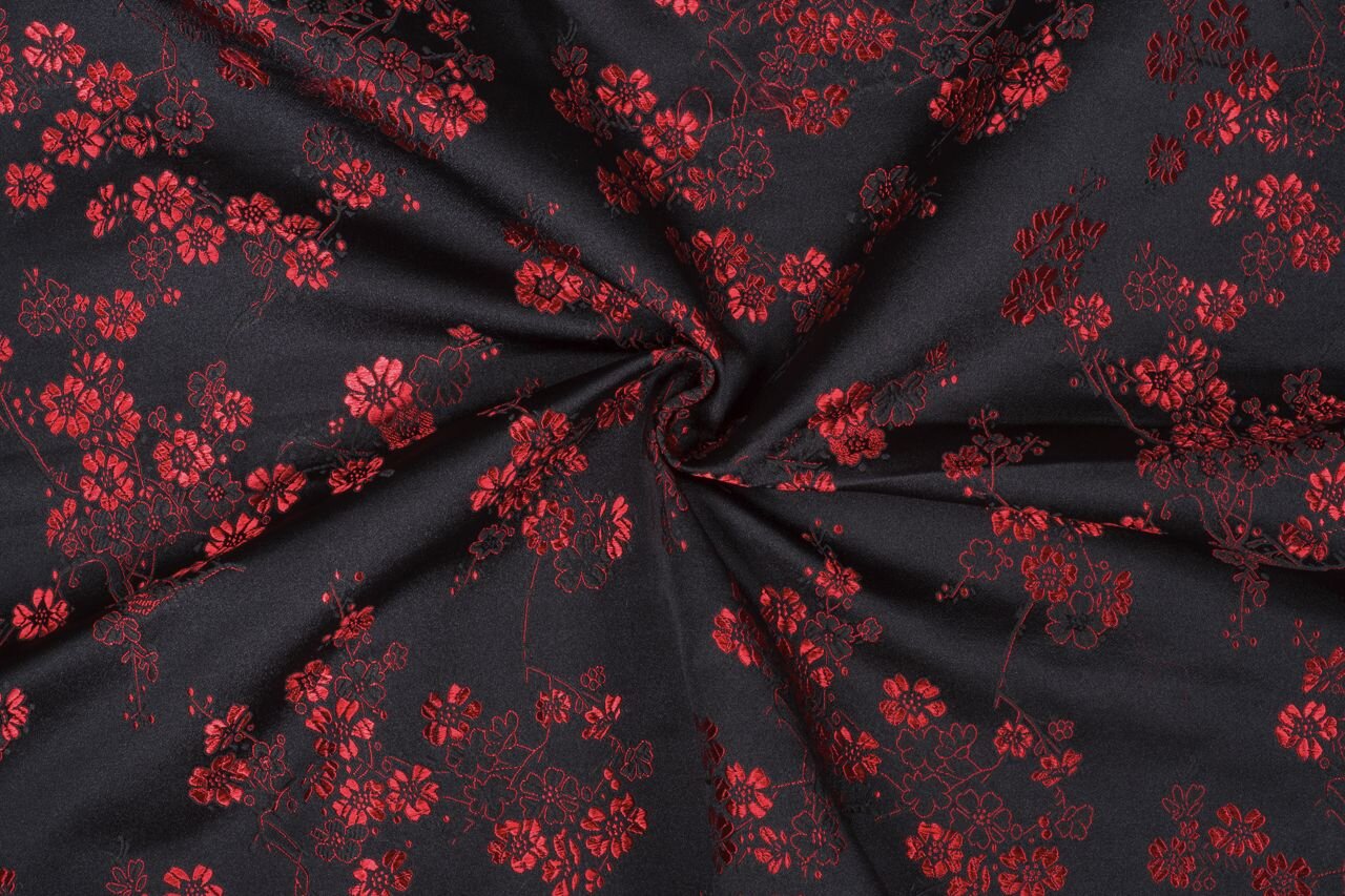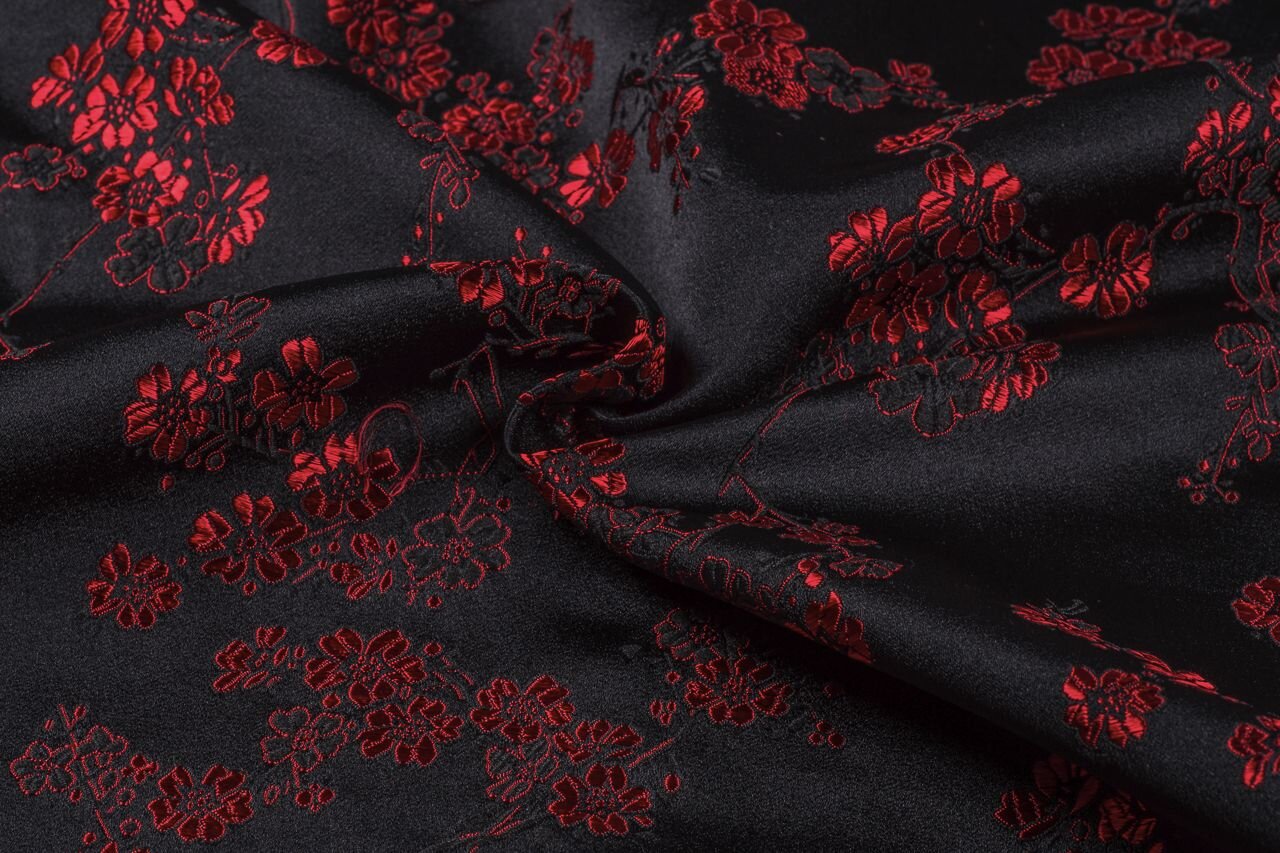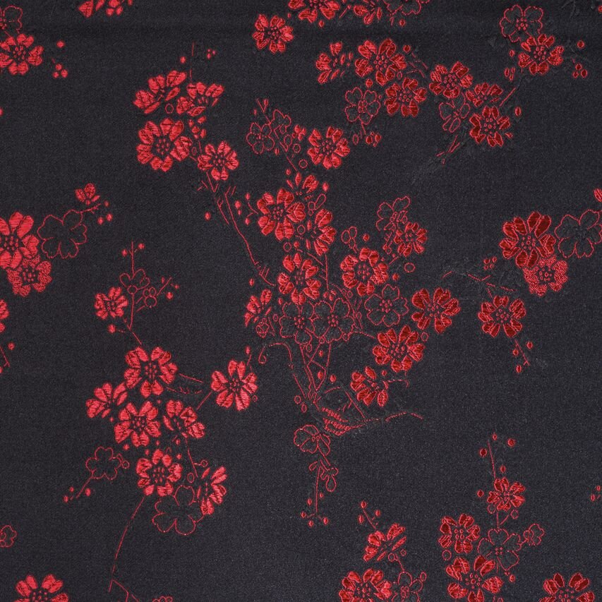 Luxusní pevná látka s pečlivě vytkávaným vzorem v červené a černé barvě. Brokát se hodí na nesplývavé, vypasované střihy nebo oděvy které mají držet tvar jako jsou společenské šaty a sukně, korzety, kabátky, saka a bundy. Ušijete z něj také krásnou kabelku, kravatu či motýlka nebo okrasný povlak na polštář či závěs.