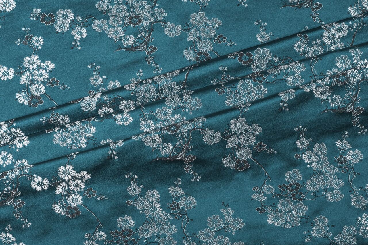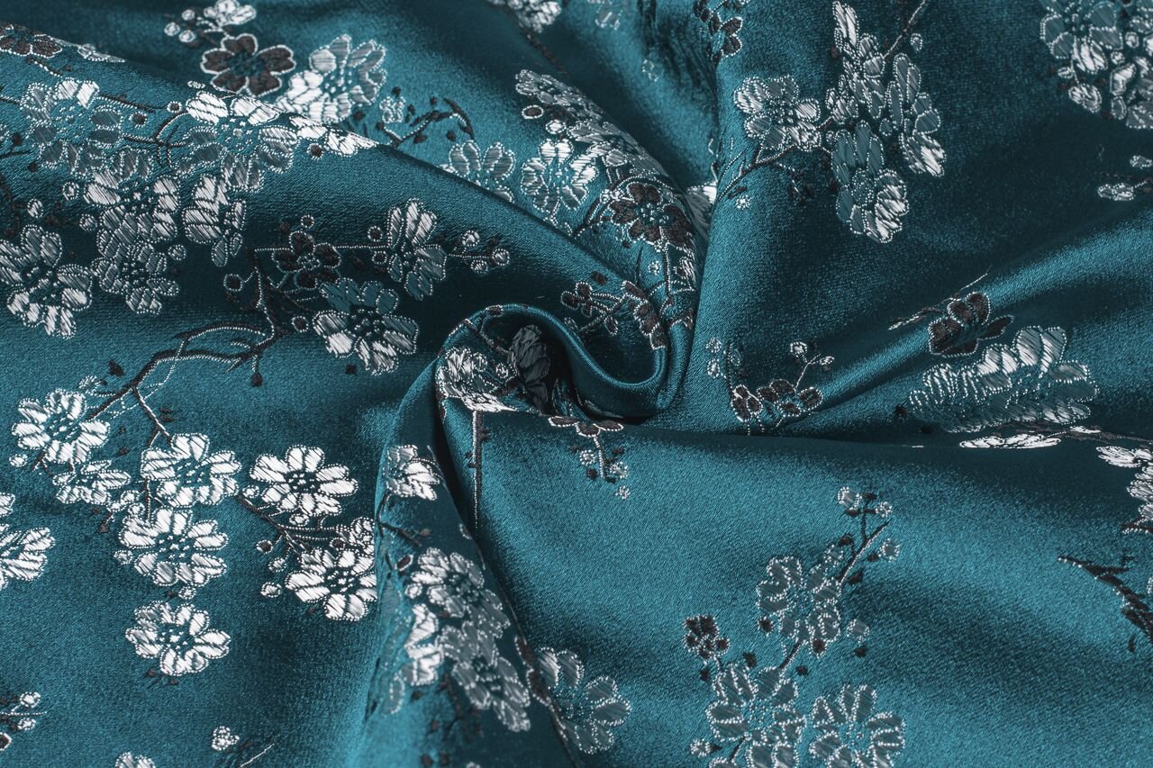 Luxusní pevná látka s pečlivě vytkávaným vzorem v barvě kachní modři. Brokát se hodí na nesplývavé, vypasované střihy nebo oděvy které mají držet tvar jako jsou společenské šaty a sukně, korzety, kabátky, saka a bundy. Ušijete z něj také krásnou kabelku, kravatu či motýlka nebo okrasný povlak na polštář či závěs.