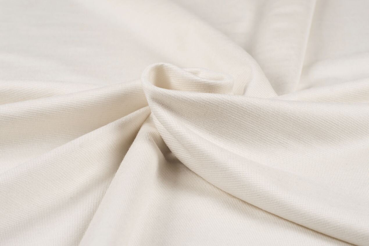 Silnější, ale velmi hebký úplet z přírodní hedvábné střiže v neutrálním odstínu bílé. Skvělý na spodní prádlo a hebké úpletové topy a trička.