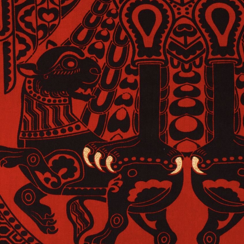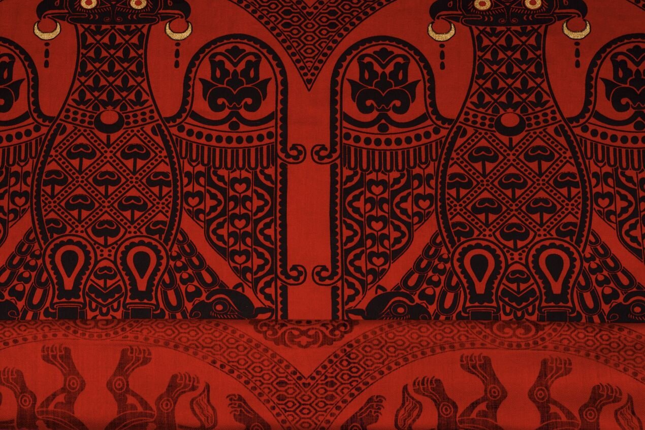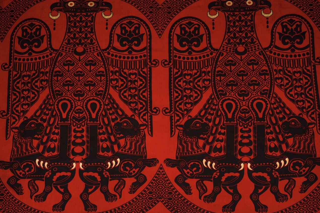 Tkanina s motivem dvouhlavého orla svírajícím lvy, inspirovaná dochovaným historickým fragmentem, je ukázkou mistrovského umění textilní výroby z období 11.–12. století. Původní hedvábná látka pochází z hrobu svatého Bernarda Calvó, biskupa města Vich v Katalánsku, který zemřel roku 1243. Tato látka je dnes součástí sbírek Metropolitního muzea umění v New Yorku a Musée des Tissus v Lyonu.