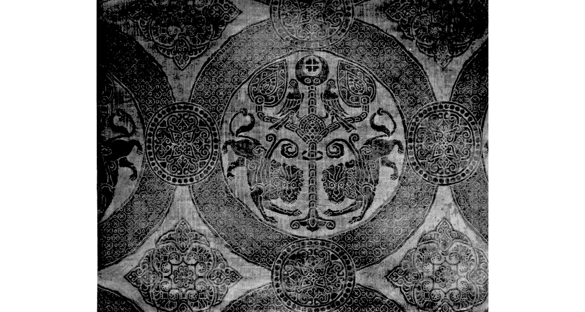 Jedná se o hedvábí byzantského původu z 12.století. Původ a stáří textilie je zde odvozován od typu vzoru a podobnosti s textilií, jež se našla v hrobce svatého Potentiena.