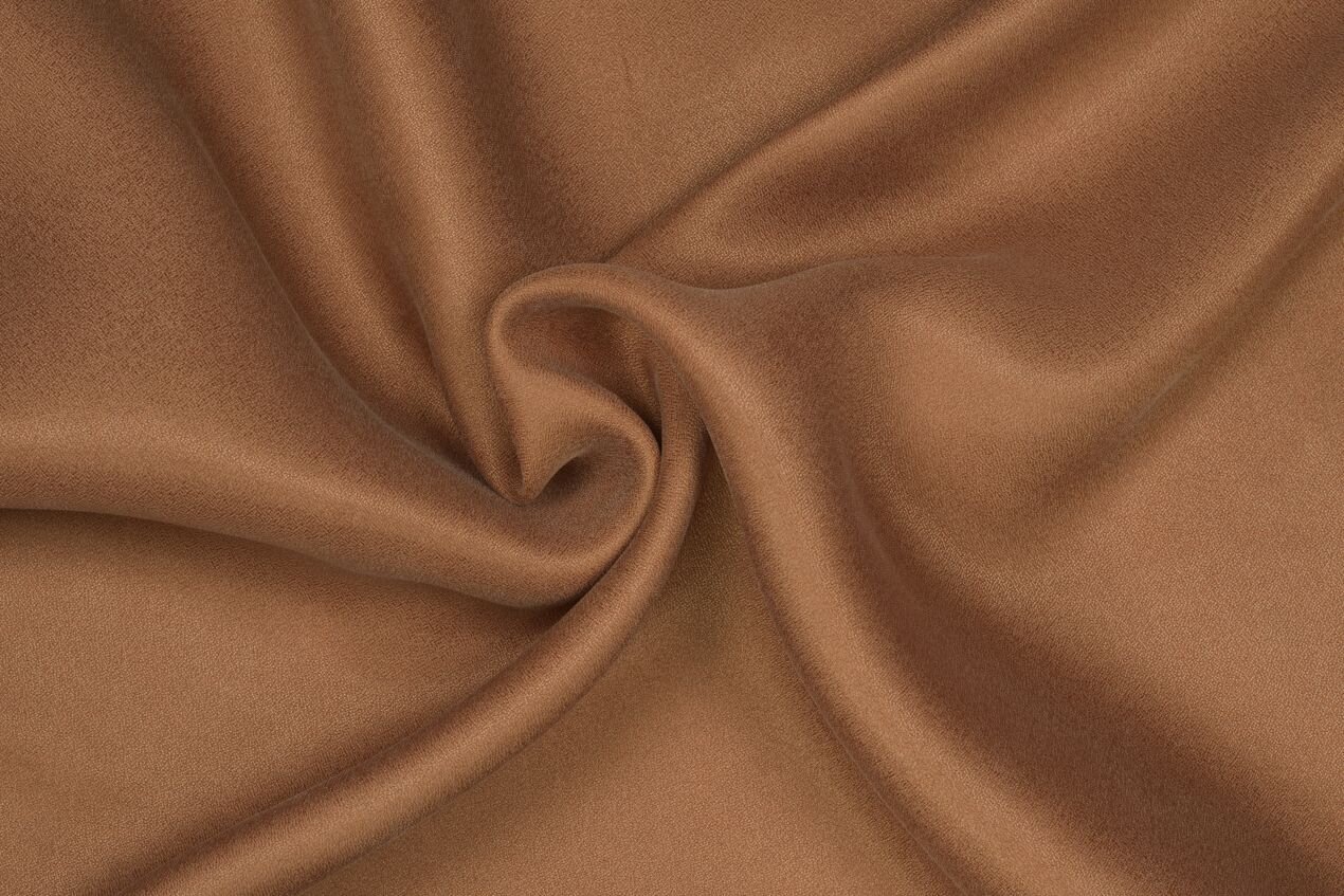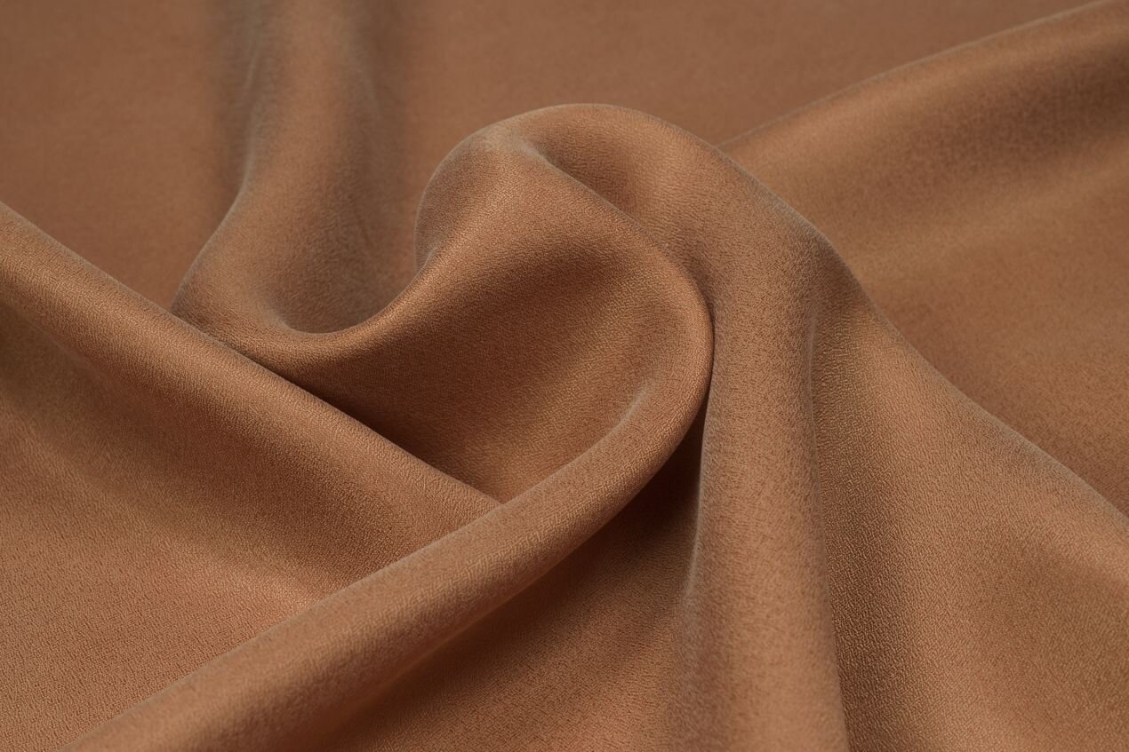 Hebká, splývavá a prodyšná šatovka ve skořivově hnědé barvě z výjimečného materiálu: cupra. Na omak připomíná přírodní hedvábí, je však oproti hedvábí méně náročné na údržbu. Hodí se na šaty, na halenky, topy i rozevláté kalhoty.