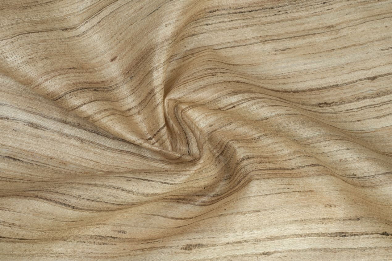 Unikátní přírodní hedvábí z kokonů divokého bource v béžové barvě vhodné na šití tužších oděvů a doplňků do interiérů jako jsou tuniky, sukně, šály, či efektní záclony.