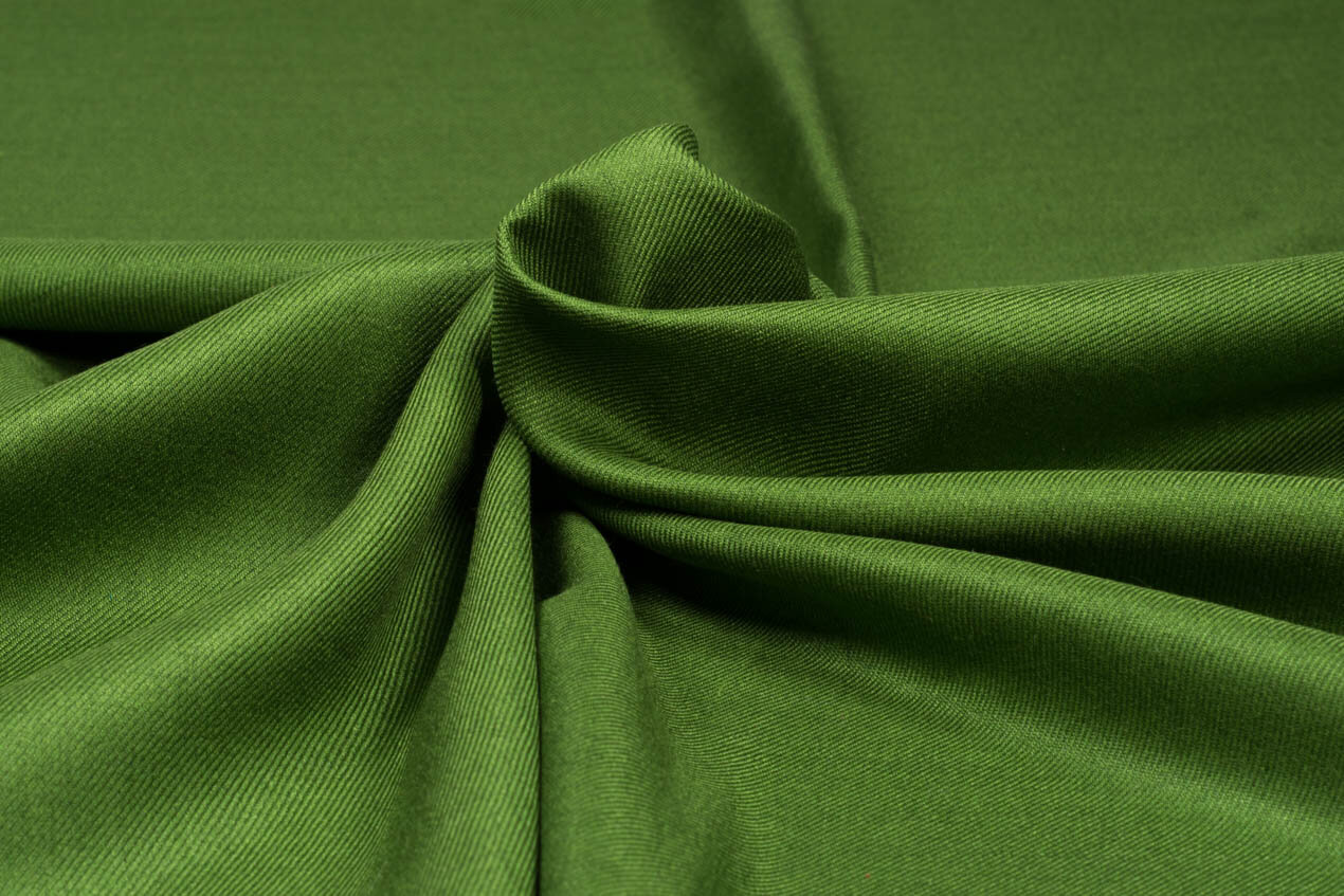 Delikatna, miękka zielona tkanina wykonana z naturalnego dzikiego jedwabiu eri tkanego popularnym splotem skośnym tworzącym drobne ukośne paski. Tworzy niezwykłe bluzki, tuniki, spódnice i sukienki.