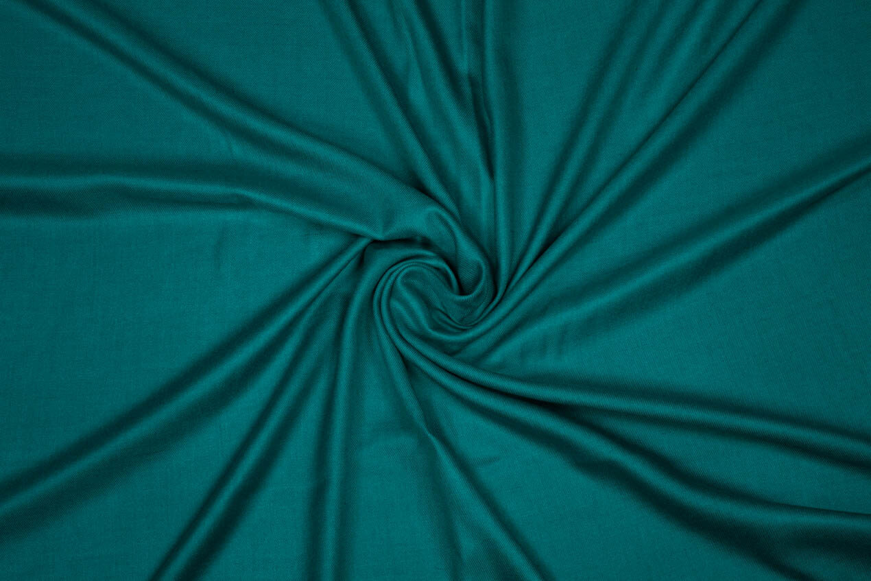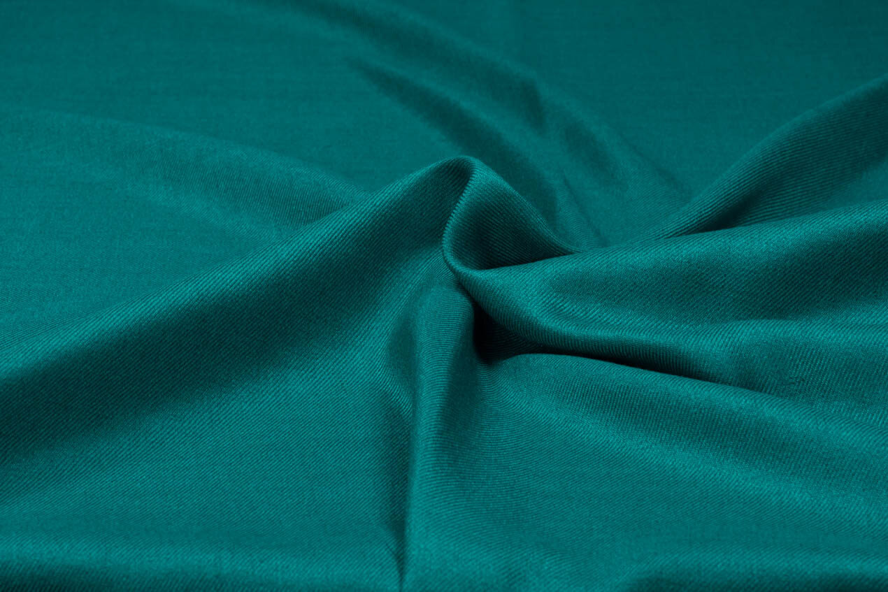 Miękka, gładka tkanina w kolorze kaczego błękitu z naturalnego dzikiego jedwabiu eri tkana popularnym splotem skośnym tworzącym drobne ukośne paski. Tworzy niezwykłe bluzki, tuniki, spódnice i sukienki.