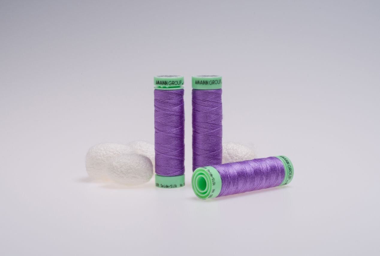 Pevná nit ze 100% přírodního hedvábí na ruční i strojové šití tloušťkou podobná běžným nitím v lila barvě.